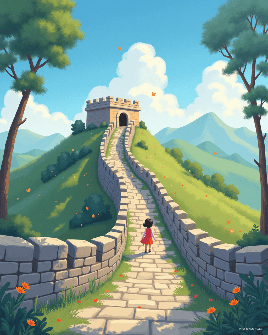 Centuries passed, and I saw empires rise and fall. Some people forgot the names of the builders, but they never forgot the Wall. Plants grew in the cracks, and birds built nests near me. Though my edges were worn smooth, I still stood proudly. I was no longer afraid — I was part of something bigger than myself.