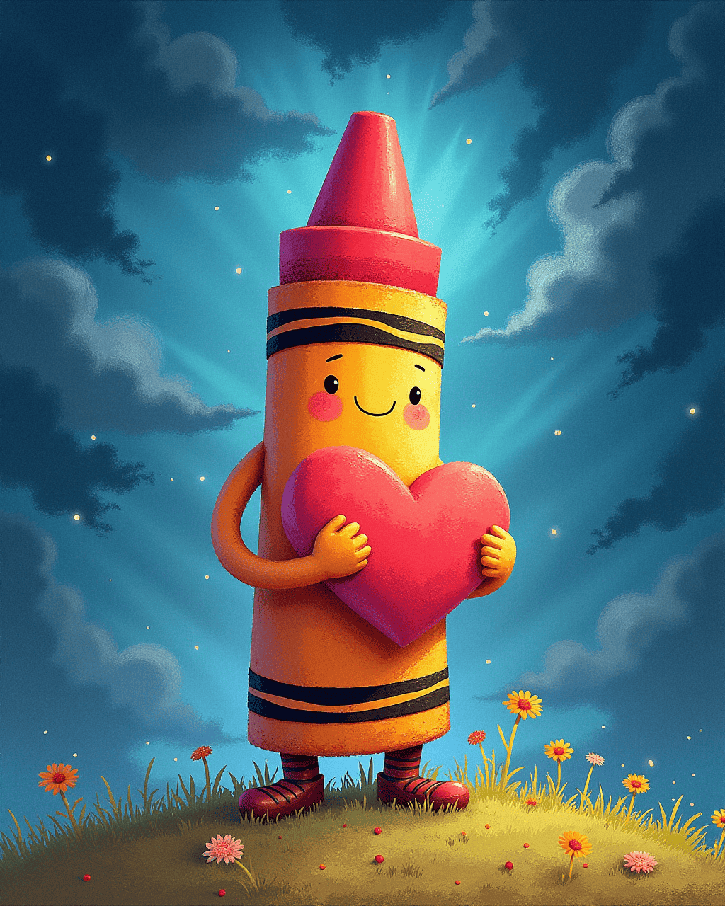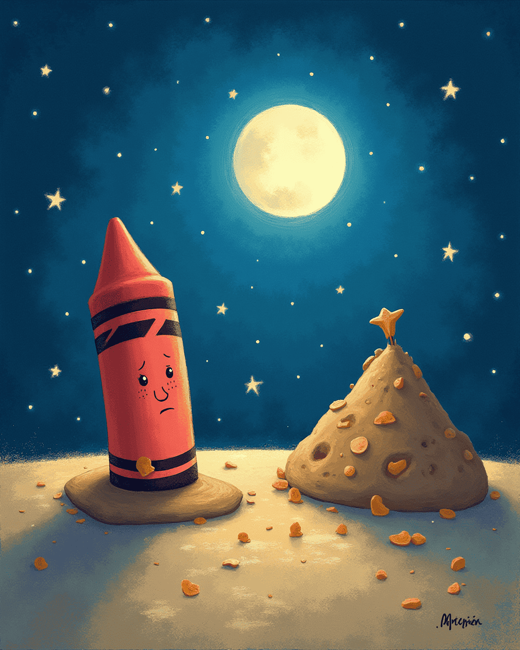 Once upon a time, in a box full of bright crayons, there was one named Coral. Coral was tired of coloring inside lines. Every day, he watched children draw trees, skies, and flowers, but he wished to make something that could be touched and held. He dreamed of shaping, not shading. His dream was to become a sculptor, not just a crayon.
