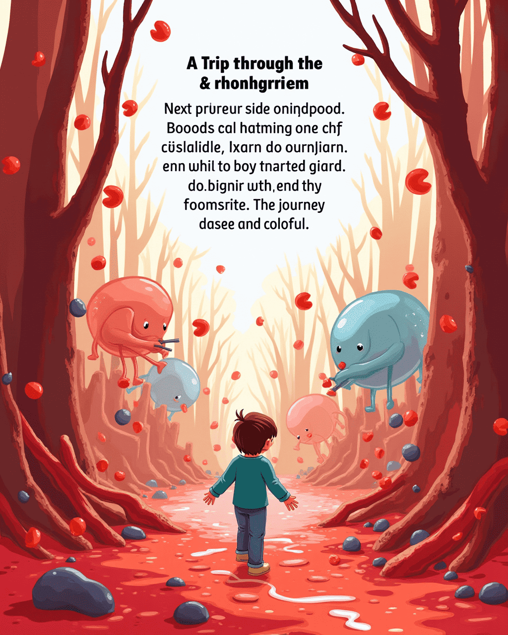 The story begins with a brave young explorer named Pip. Pip decides to take a magical train that can slip inside a human body. As Pip steps inside, the first thing Pip sees is the beating heart. The heart pumps warm blood like a drum. Every beat makes Pip feel a rhythm.