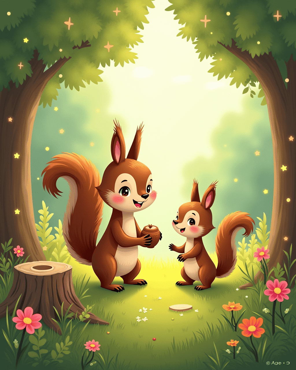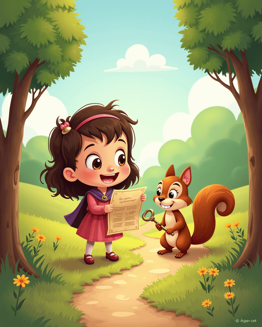 4. Along the way she met a friendly squirrel holding a shiny key.