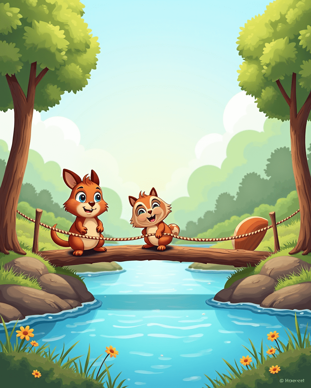2. Lily was nervous about crossing, but the squirrel offered to build a bridge.