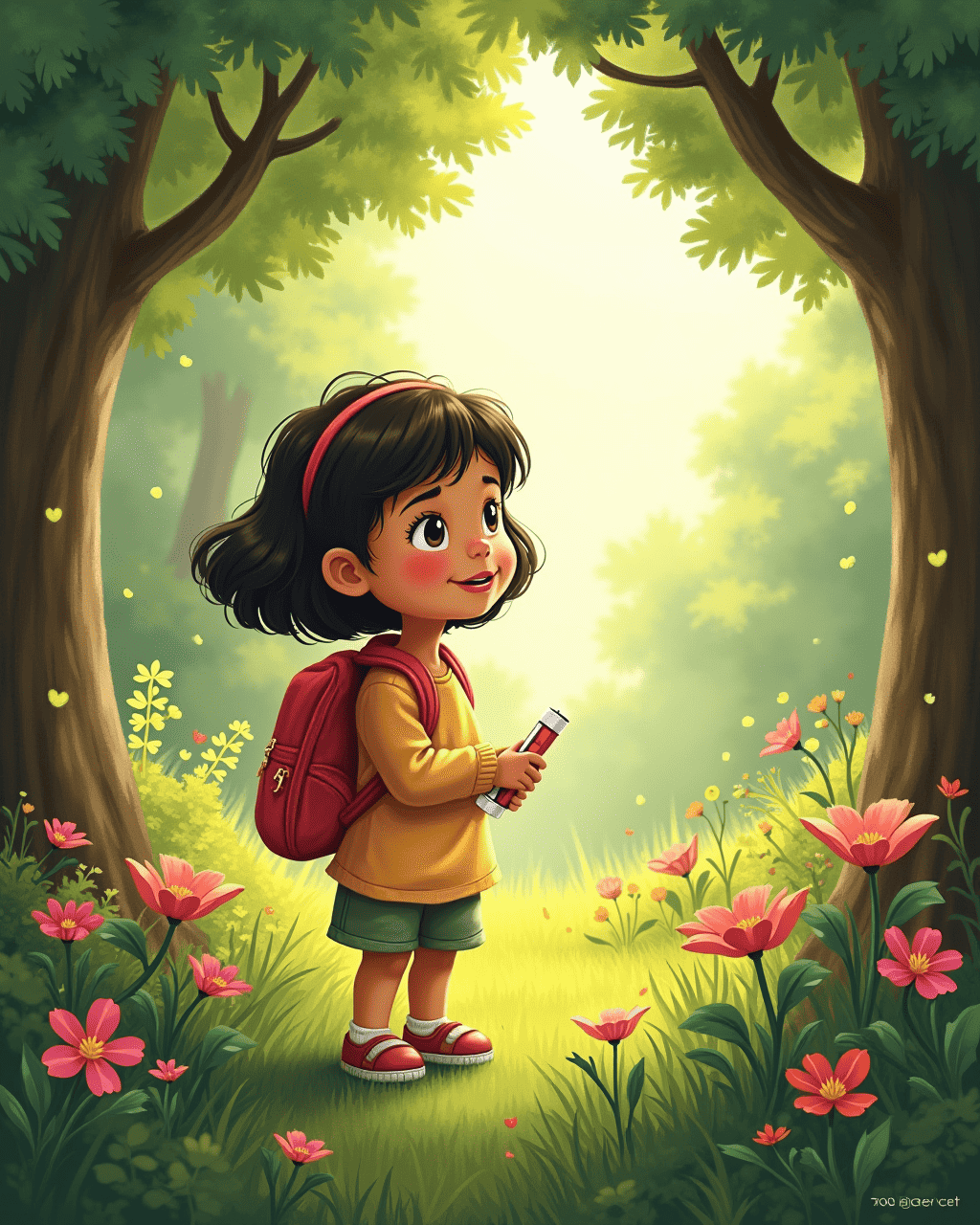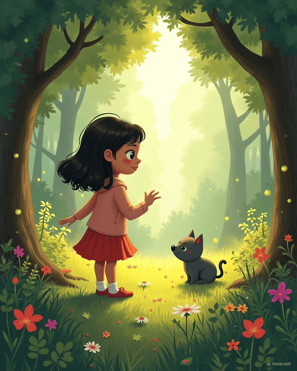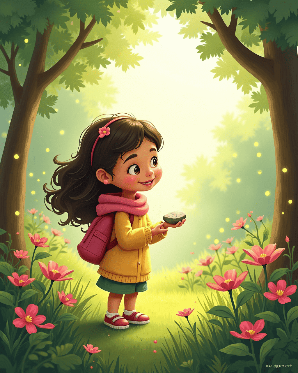Lily loved exploring the woods behind her house. The trees whispered secrets when the wind blew. One sunlit afternoon, she heard a distant echo that sounded like a voice. Her heart beat fast, but she stepped forward anyway. She felt the gentle rustle of leaves guide her deeper into the forest.