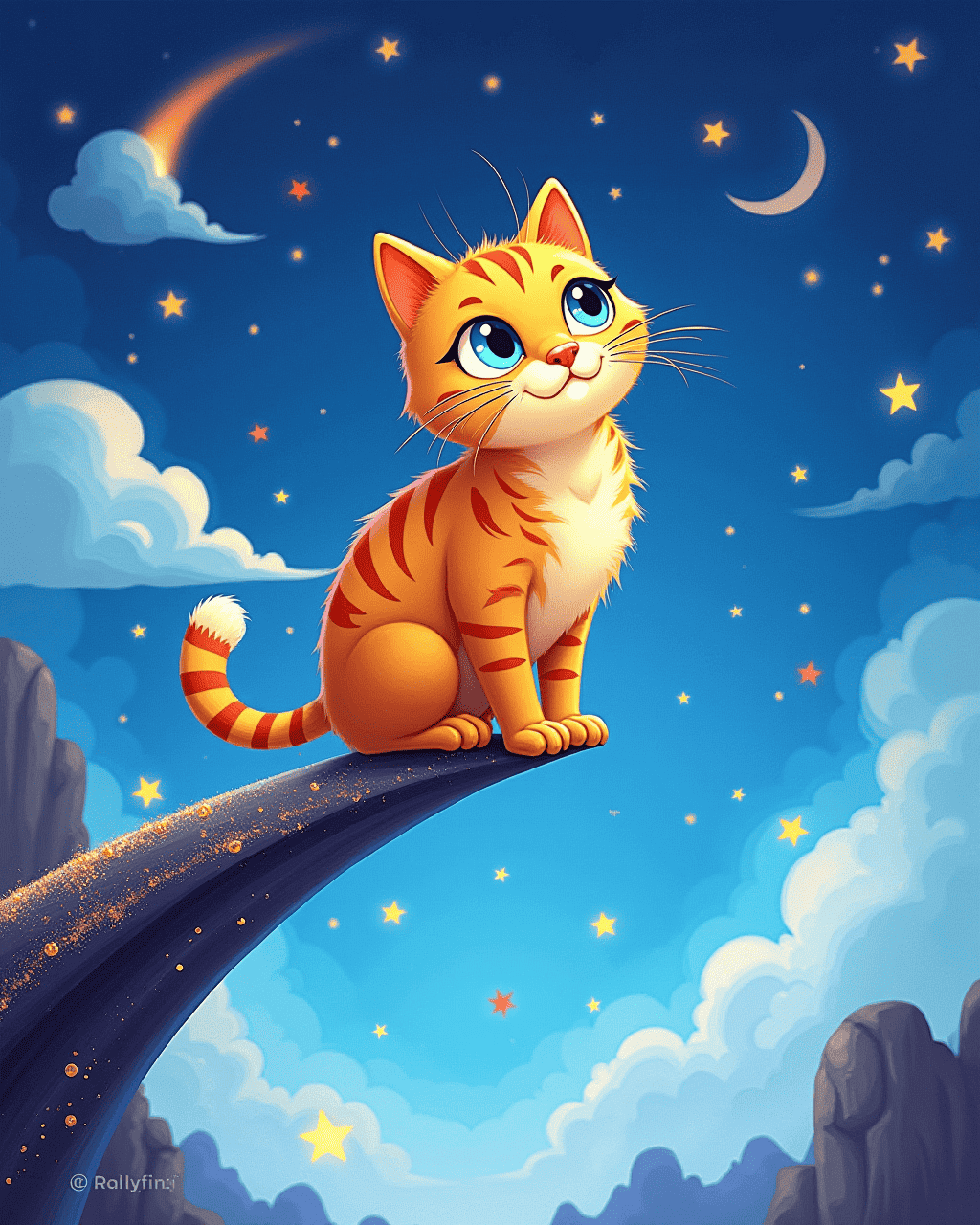 The curious comet cat perched on the edge of a glittering comet tail. It chased tiny stardust as if it were bright, invisible fish. Its whiskers glowed with aurora light, guiding lost travelers through nebulae. Children everywhere were fascinated by its playful leaps from sky to sky. The cat's purrs resonated like distant rocket engines, soothing the whole galaxy.