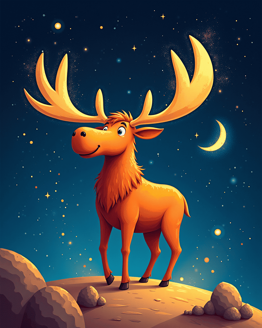 The wiggling meteor moose lived inside a spinning asteroid. Its antlers sparkled like tiny galaxies. Every morning it shook its body, sending showers of sparkling meteor dust around. Visitors often tried to mimic its graceful wiggle and felt a little lighter. The moose's breath carried stardust that smelled like fresh pine on a cold moon.