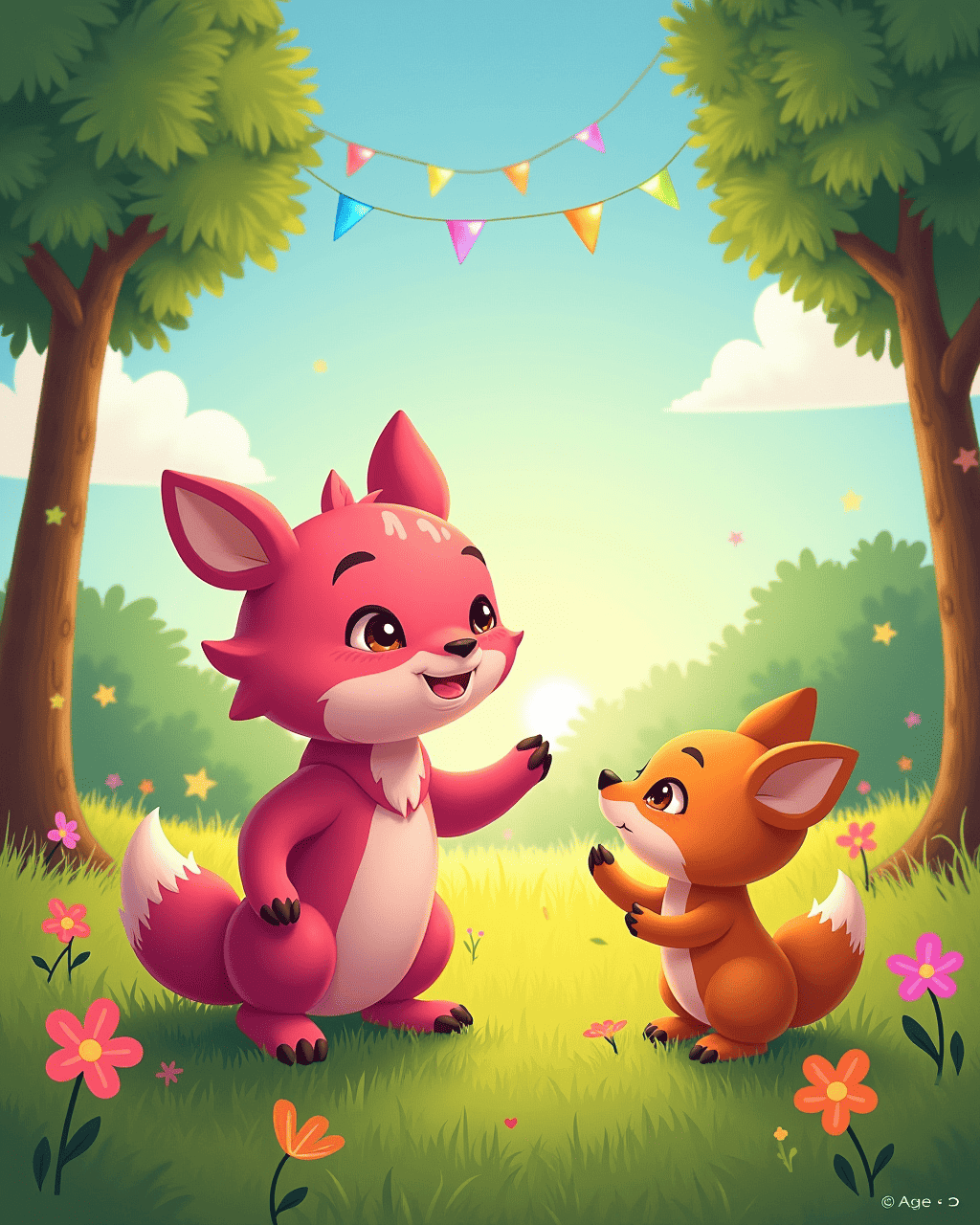 The day of the big picnic approached. Milo invited everyone and arranged bright colored lanterns. His pink fur glowed softly in the sunlight, and every animal saw how beautiful it was. He danced with the deer, played hide and seek with the fox, and sang with the hummingbirds. Laughter filled the meadow, and everyone learned that differences can be a source of joy.