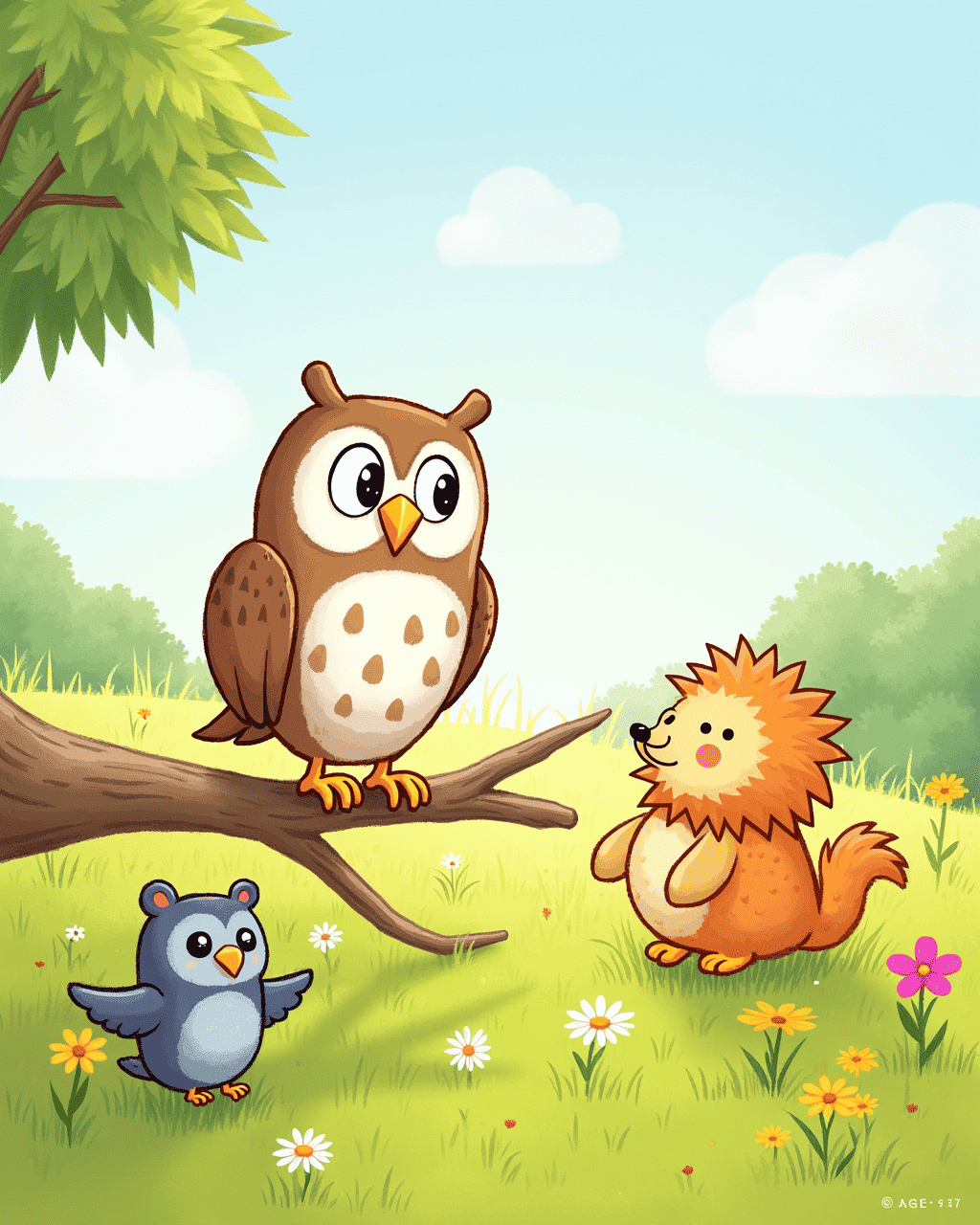 But a misunderstanding grew when the wise owl, Orin, overheard a rumor that Milo would change because of the new friend. He frowned and said, "If one must be true, acceptance is a kind way." The other animals heard his wise words and quickly joined Milo. They all sang a new friendship tune that mixed music and laughter. The music echoed across the meadow, making everyone smile.
