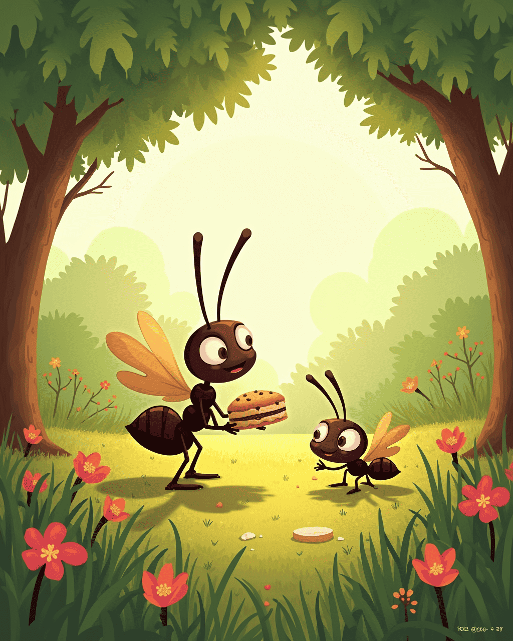 Deep beneath the grass, in a bustling anthill, lived a colony with a dream — to steal a giant cookie that had fallen from a picnic table above. Every ant wanted a taste of the sweet round treasure. But the cookie was guarded by towering humans and a watchful dog. The ants knew it wouldn’t be easy, but they were small, clever, and determined.