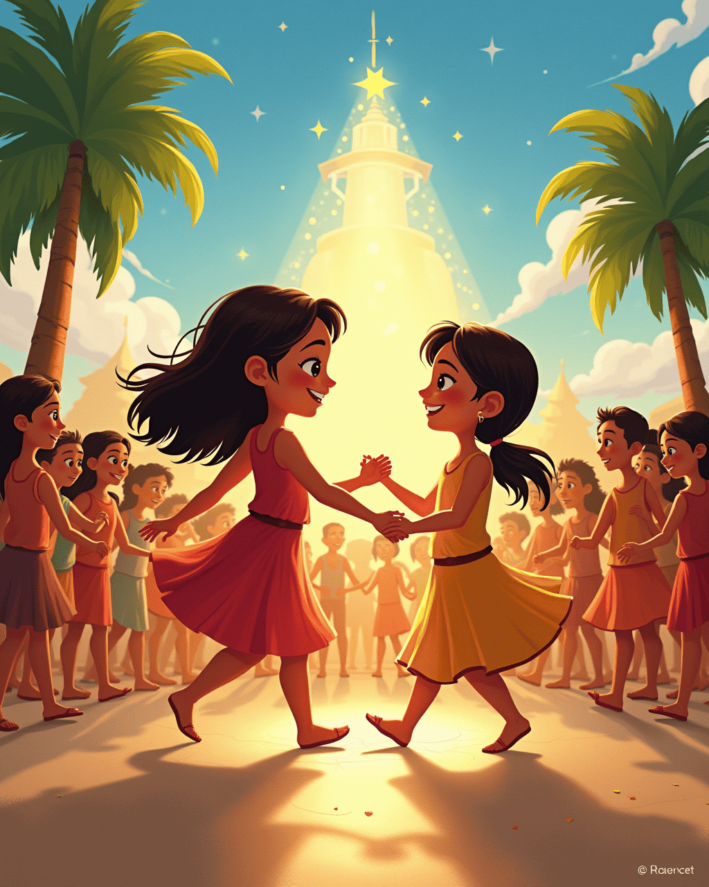 At last, the Festival of Light arrived. Every dancer, young and old, filled the square with motion. Lira and Toma led the final dance — a graceful duet of friendship. They spun together, laughter glowing in their eyes.