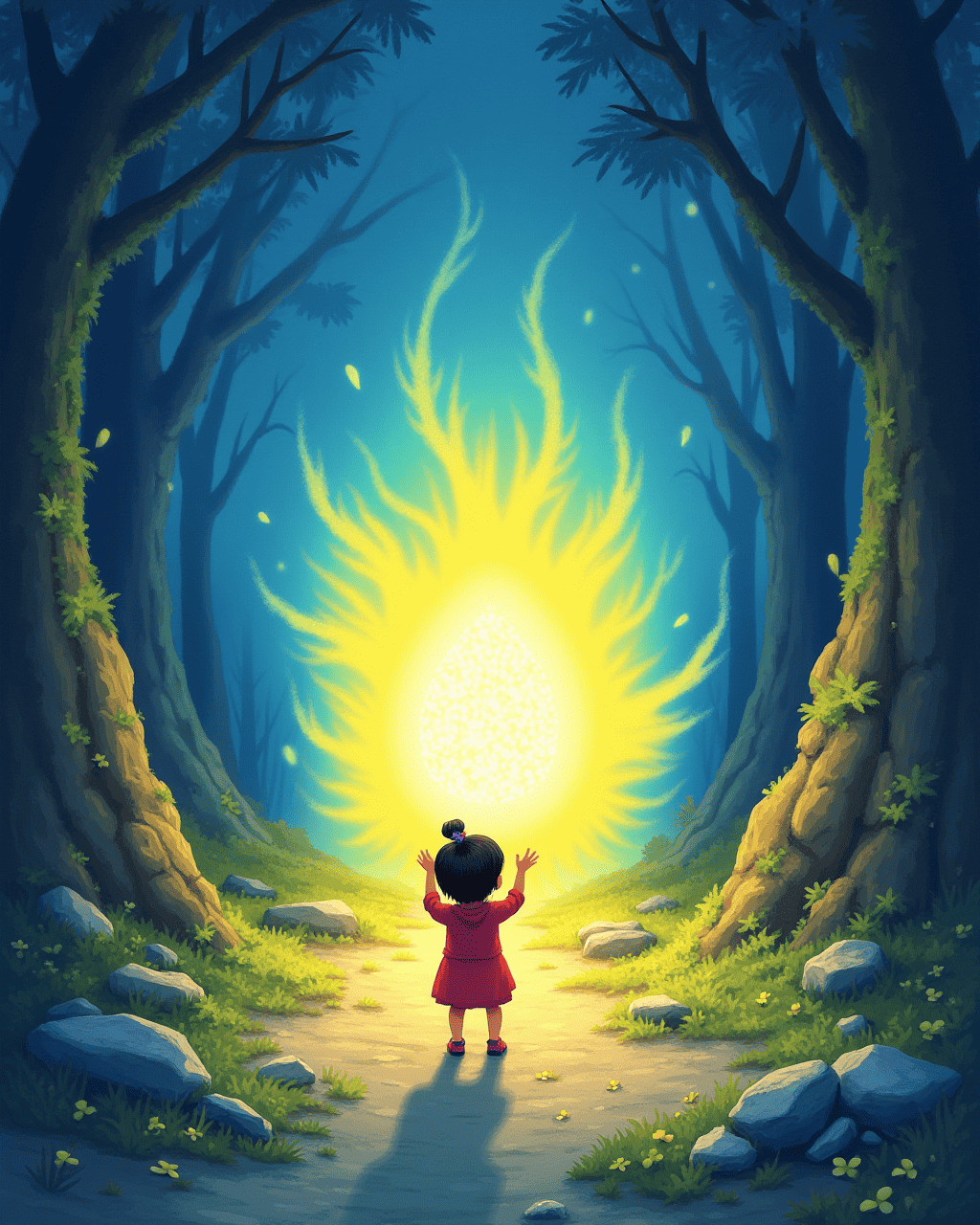 In the center of the glade lay a stone pulsing with golden light. Lily reached out and brushed its surface, feeling warm energy flood her fingertips. Milo, eager to help, hovered close and touched it too. The stone hummed, weaving bright sparkles between their palms. They realized that this stone could change the way they used magic.