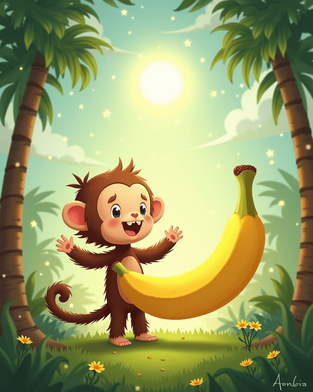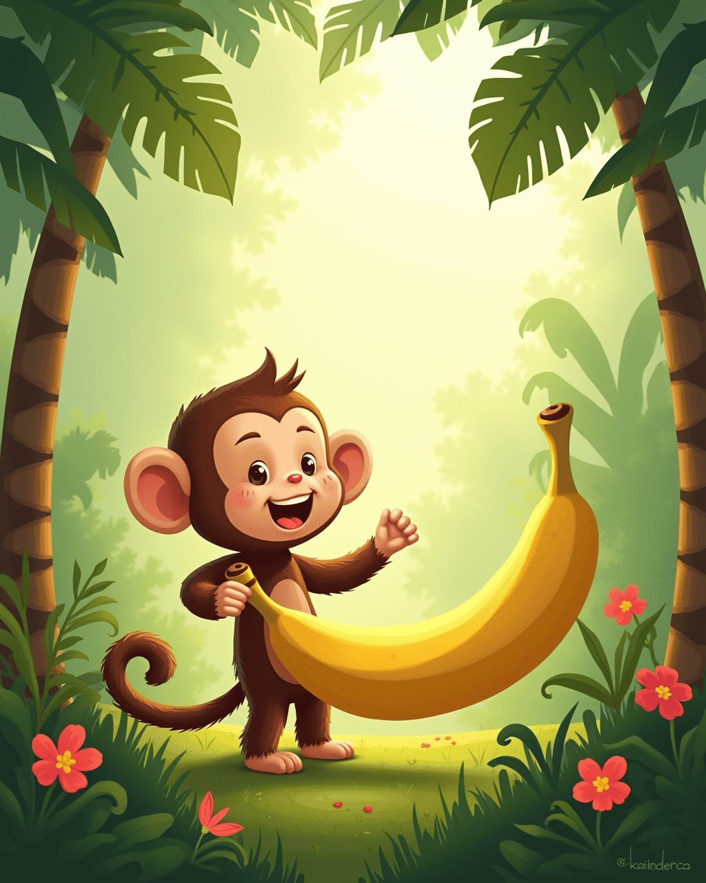 But when he looked around, he realized something magical: the jungle itself seemed brighter, and every banana looked perfect now.
