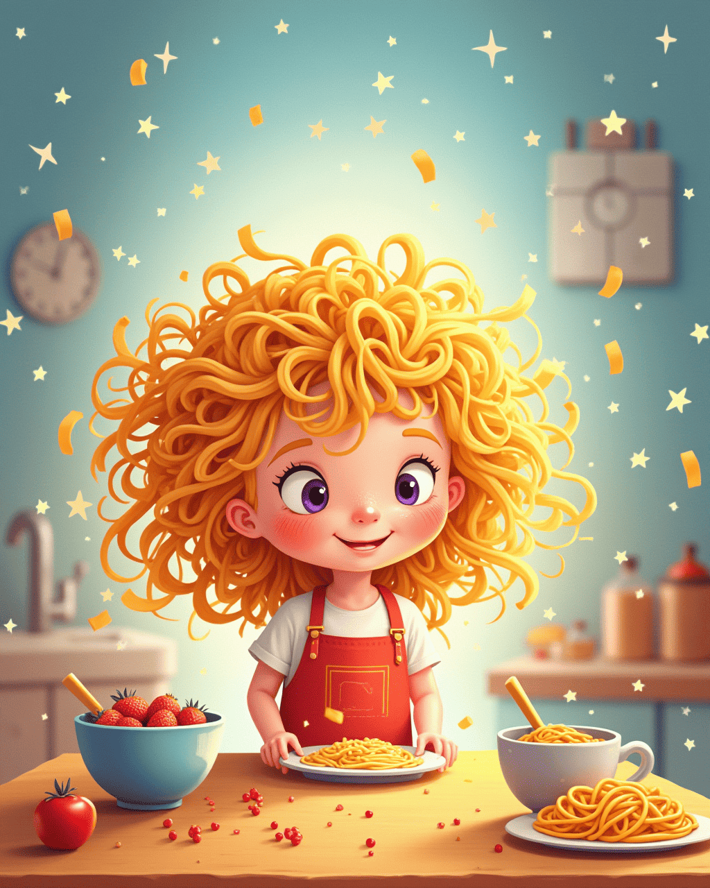 A playful adventure about a young chef named Lila who decides to create the most creative hairstyle ever—using spaghetti! She learns about cooking, creativity, and sharing all while having fun with her family. Perfect for children who love food, art, and imagination.