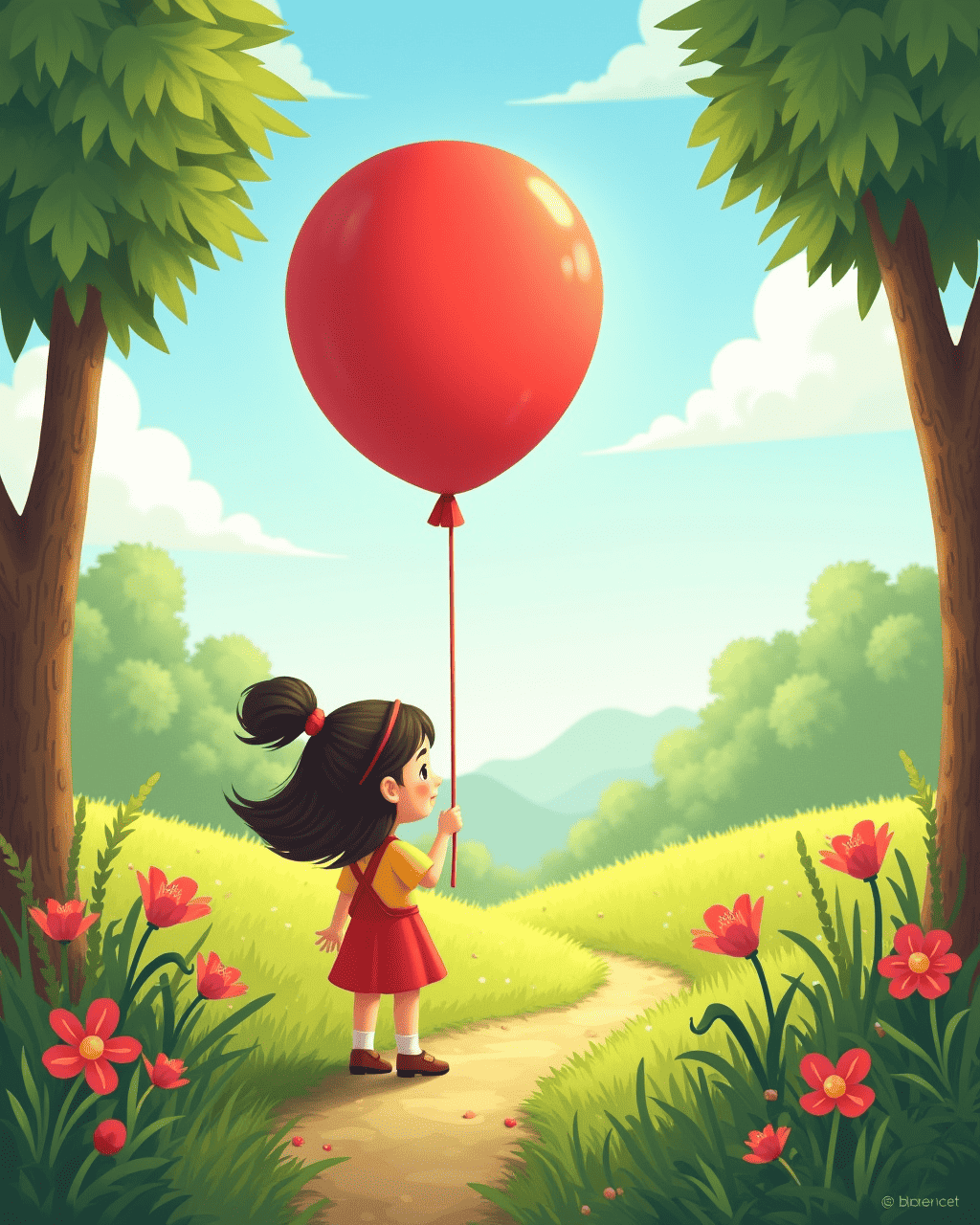 Long ago in a small village, there lived a curious girl named Lily. She loved to explore forests, rivers, and clouds. One sunny morning, Lily found a bright red balloon rolled under her bed. It seemed ordinary, but when she touched it, the balloon leapt up and whispered, "Let’s fly together!" Lily was thrilled and decided to follow the balloon's adventure. And so, the journey began.