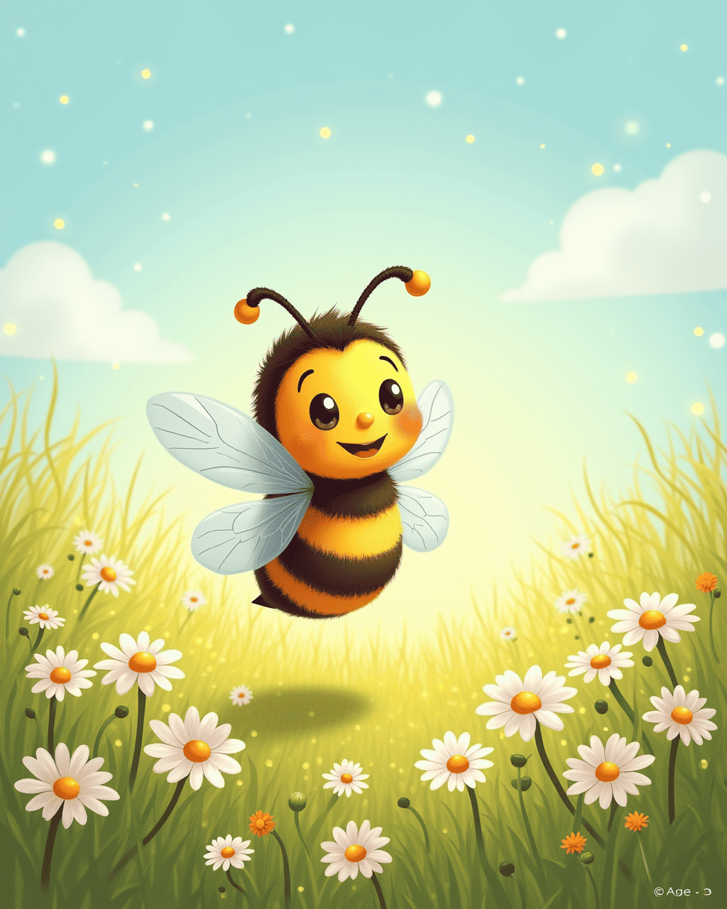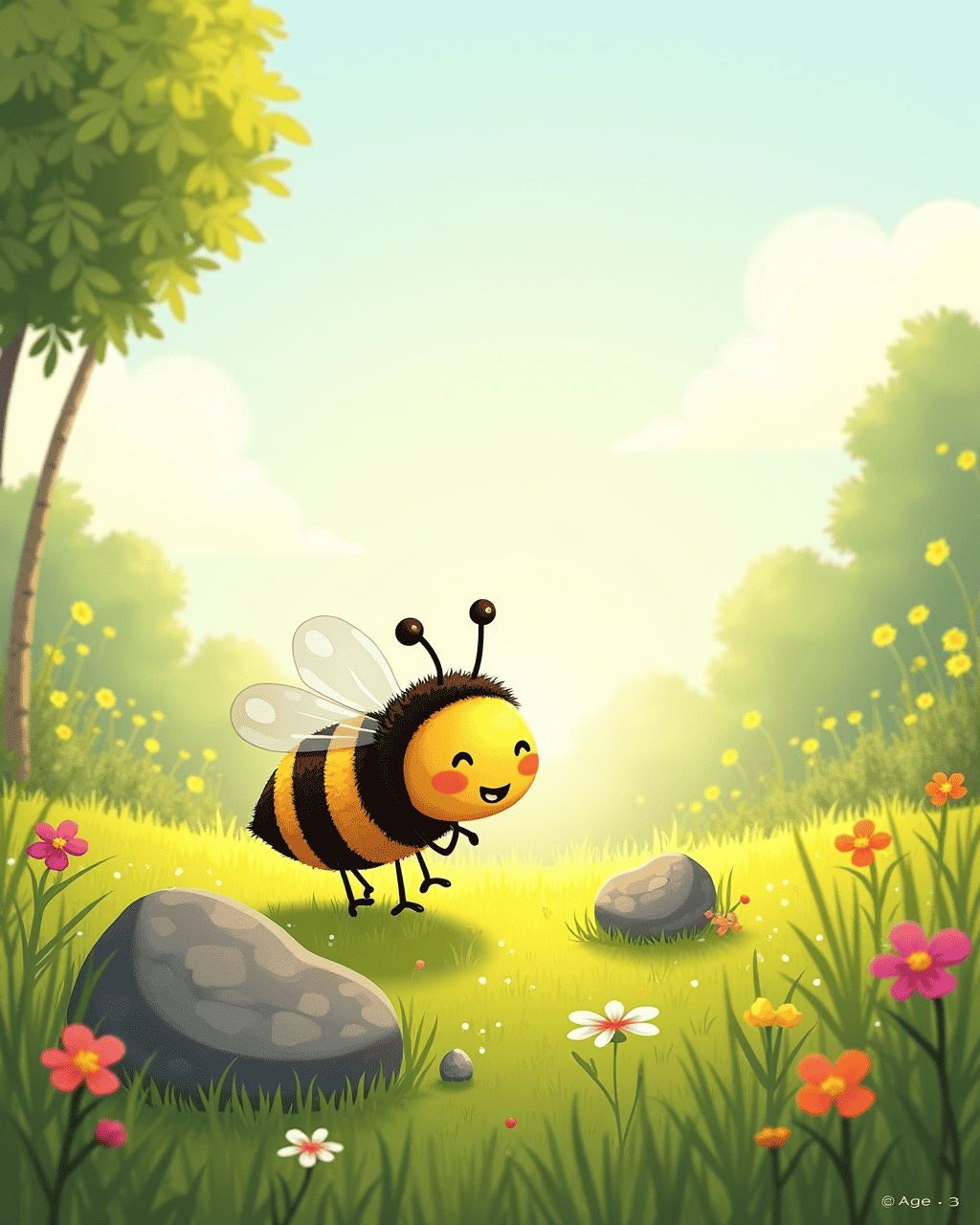 Buzz the bee buzzed happily among the daisies, his wings fluttering like tiny hummingbirds. He loved to explore the meadow and collect golden honey. One sunny morning, he noticed a shiny marble rolling by the riverbank. Curious, Buzz hopped onto the marble and felt a strange warmth. Little did he know that this small stone was a magical bouncing stone!