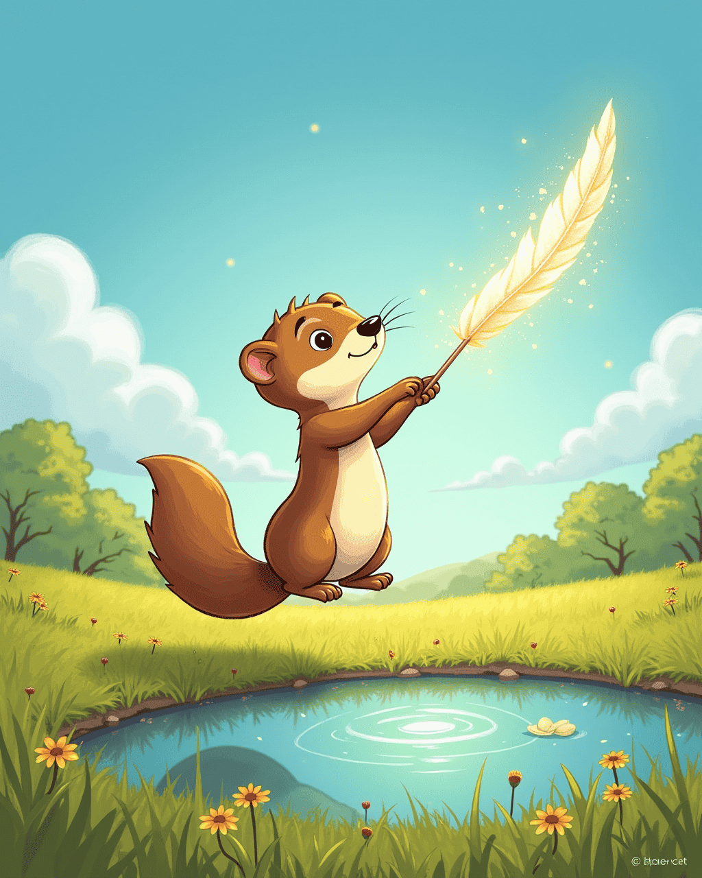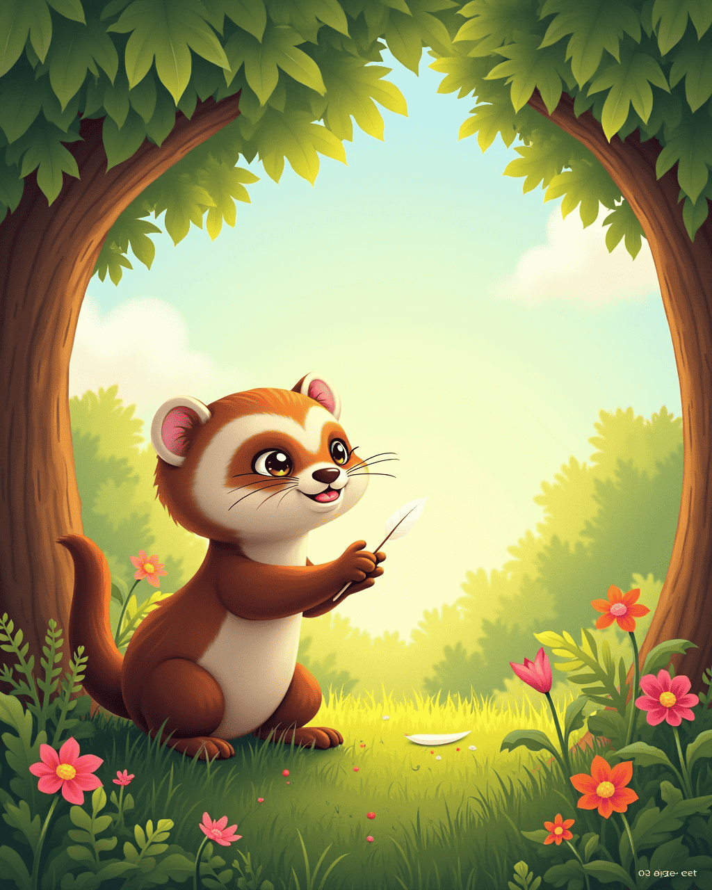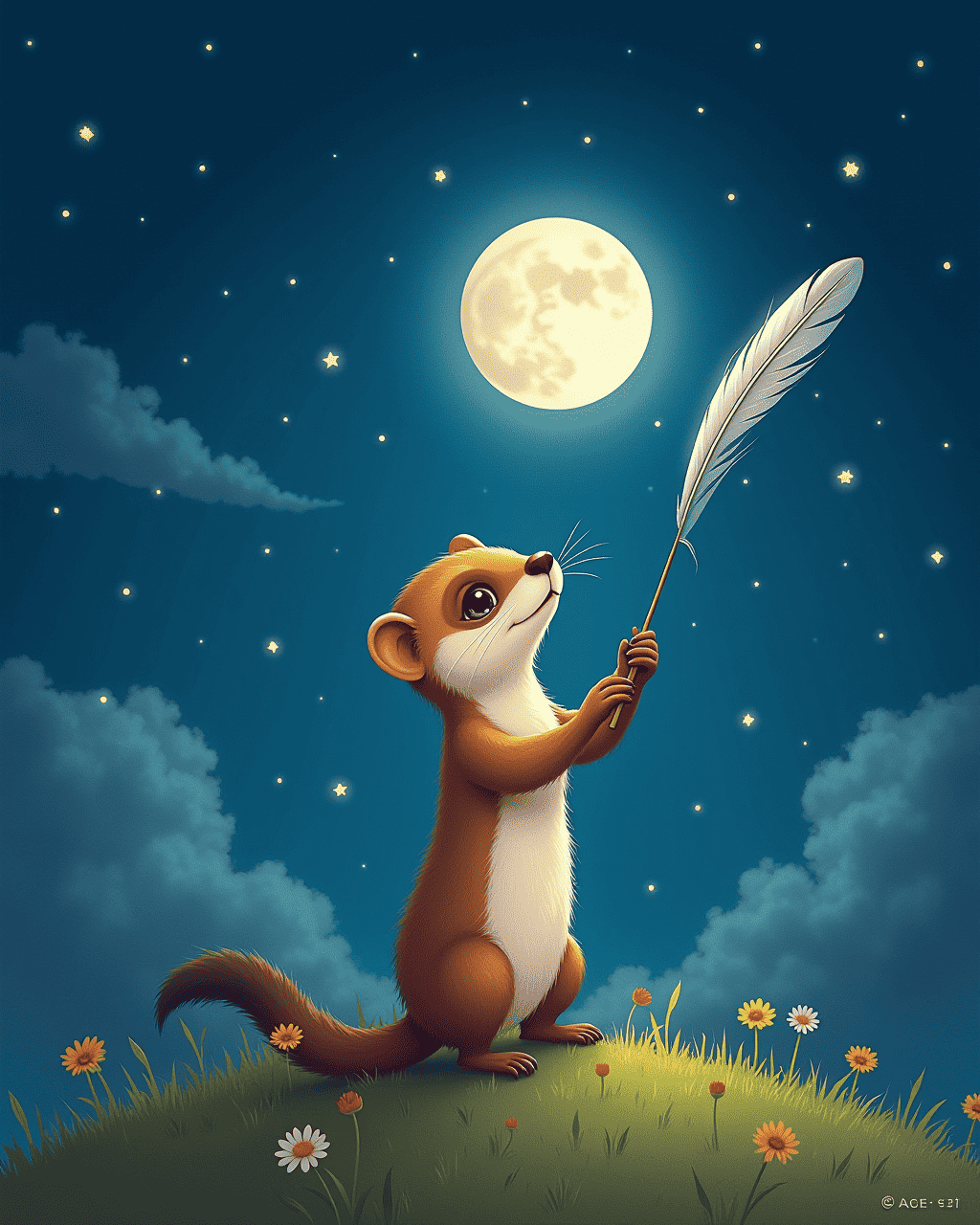 Fritz the ferret lived in a cozy burrow beneath a tall maple tree. Every night, he would lay his head on a leaf and stare up at the stars. He imagined a world where he could soar like a bird. He dreamed that a bright feather would guide him through the sky. He whispered to the wind, hoping someone would hear him.