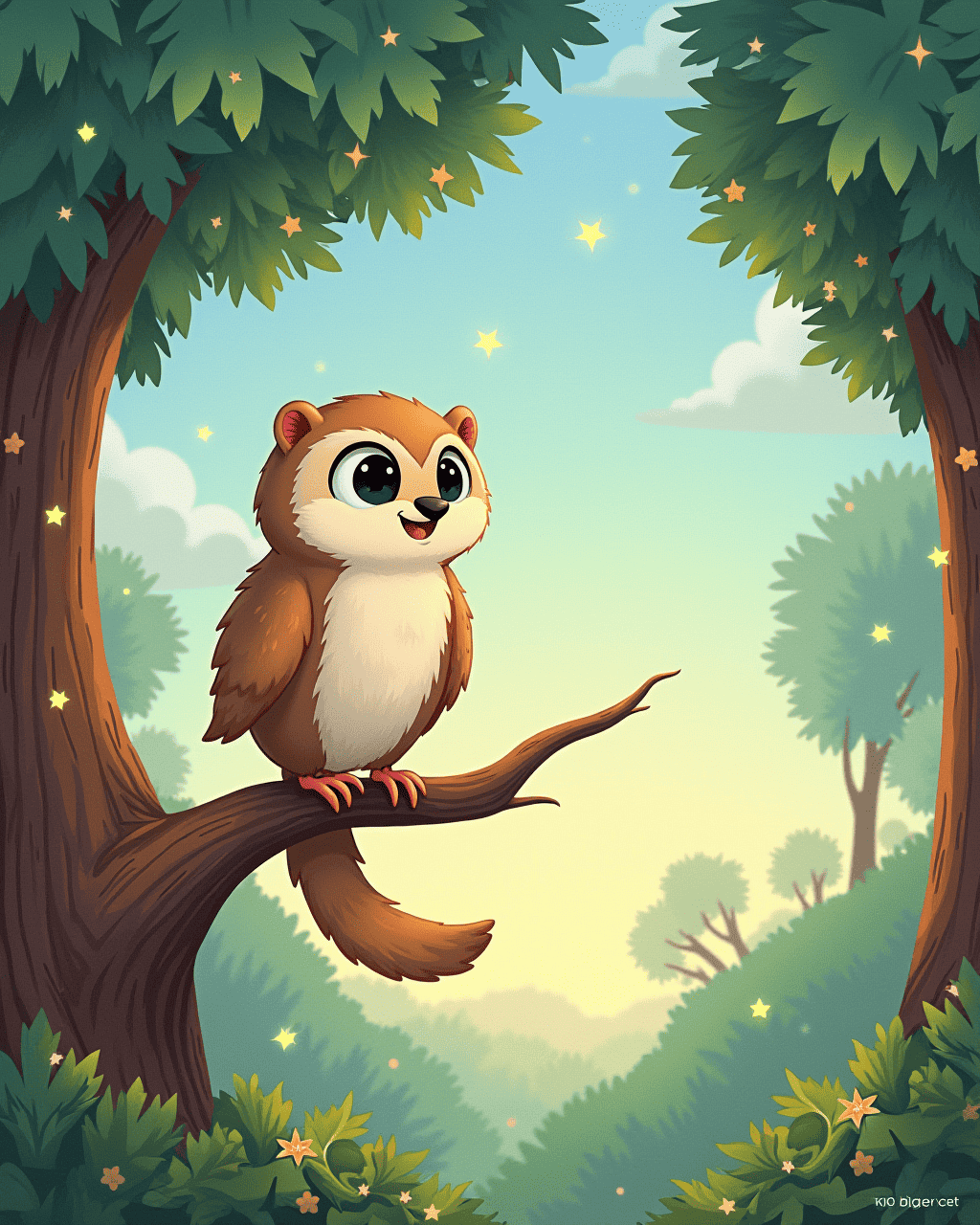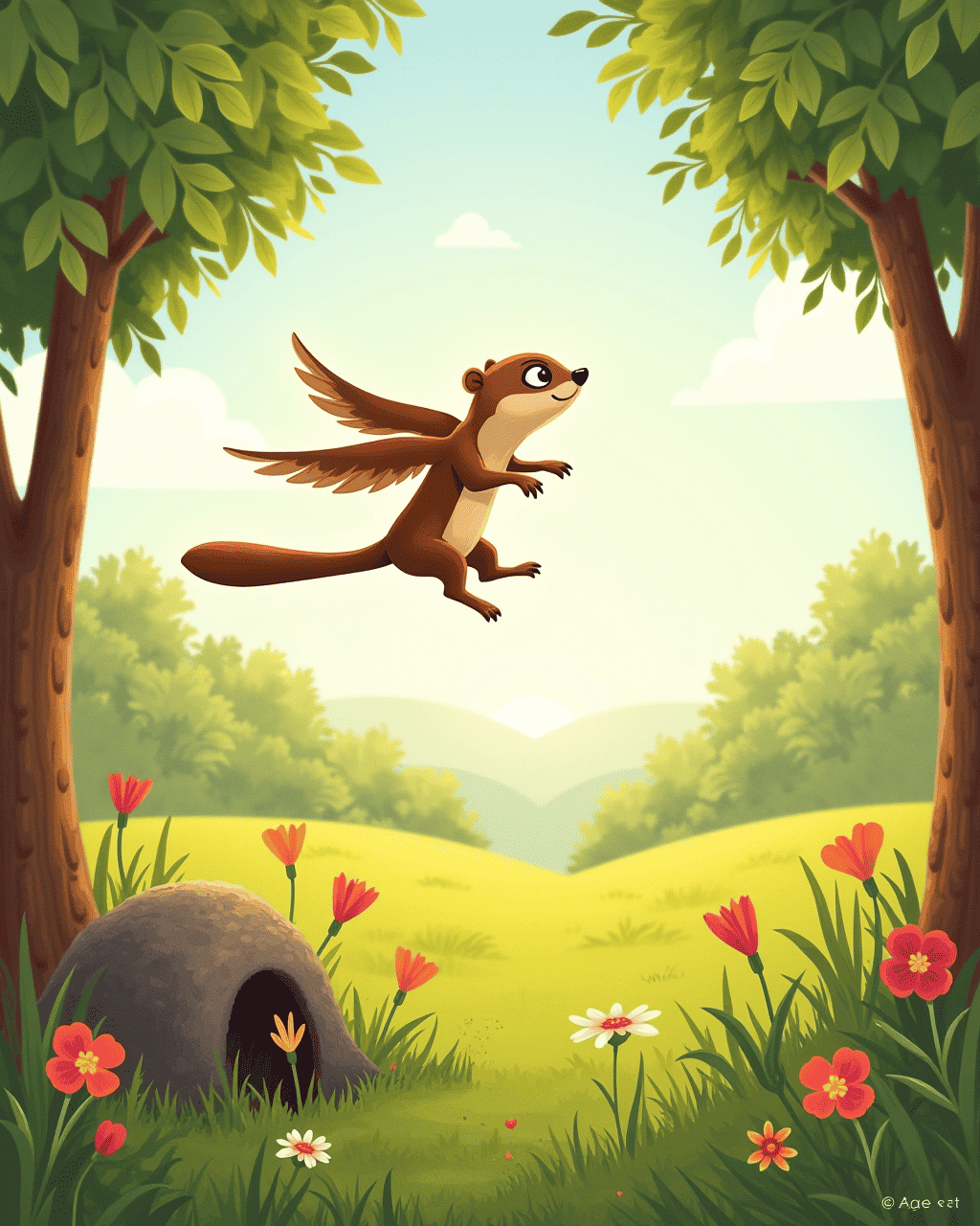 Fritz flew over the maple, landing gracefully near his burrow. He felt grateful, realizing courage could lift him higher than stars. The villagers of the forest cheered, impressed with his daring flight. Fritz returned to his burrow, knowing he would always chase the sky.