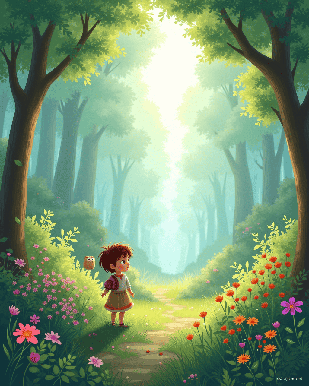 At the canyon’s bottom, a forest of crystal trees glimmered. Jack landed softly, the glider's feathers brushing leaves. He met a wise owl who spoke in riddles about bravery. The owl guided him to find a hidden crystal key. Jack thanked the owl, feeling his heart grow daring.