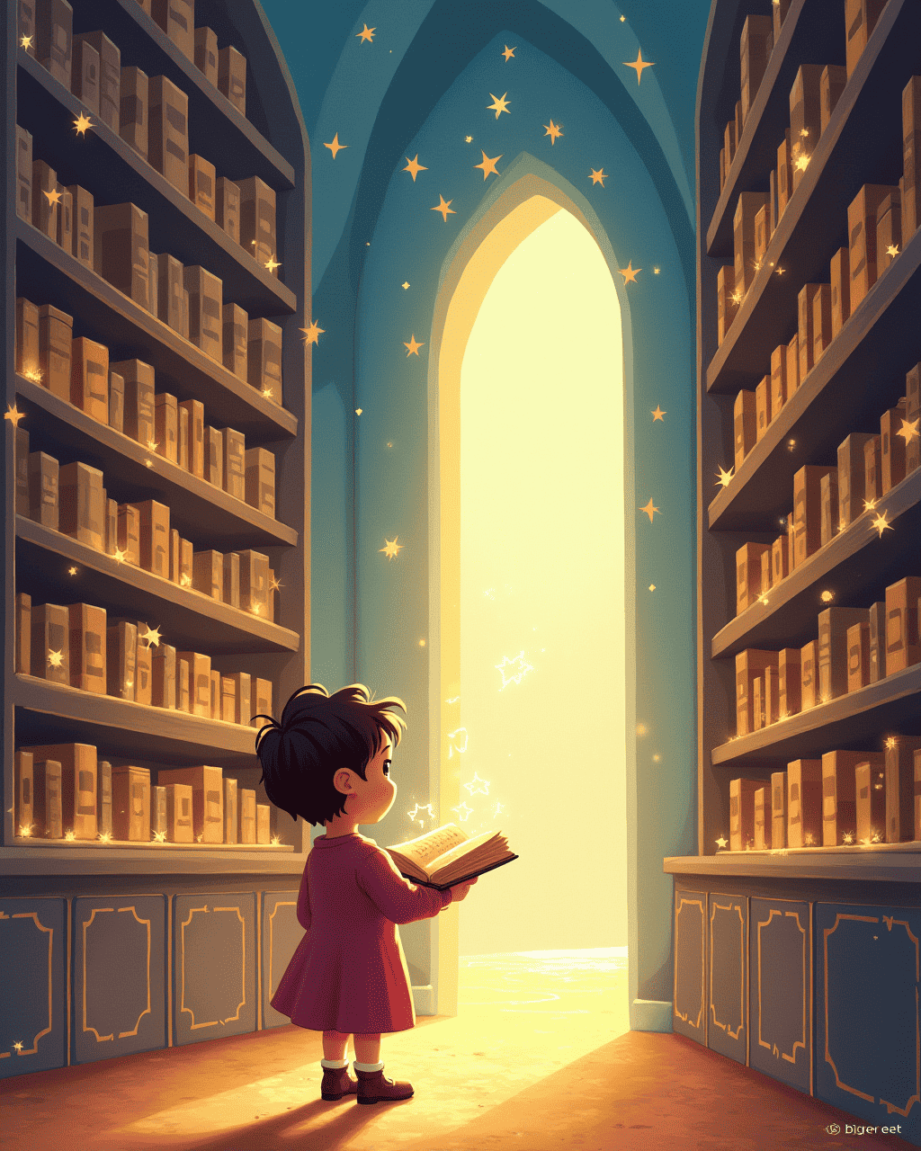 Inside the palace, Jack discovered the Great Library of Light. Shelves shone with golden books that hummed ancient songs. He flipped through pages that sparkled, learning tales of heroes. A silver librarian offered him a book to remember his journey. Jack accepted it, promising to keep the magic alive.