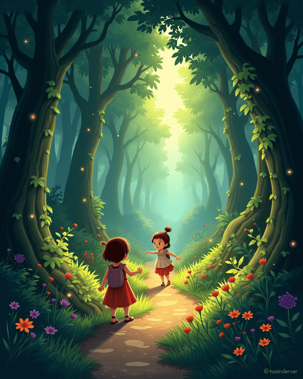 In the thicket, trees twisted like dancers, their leaves shimmering like lanterns. The globe pulsed and projected a map that shimmered in the twilight. Every step was careful; they avoided roots that tangled like knots. The stars above twinkled like tiny lanterns guiding their path. The pair felt the heartbeat of the forest grow louder and more rhythmic.