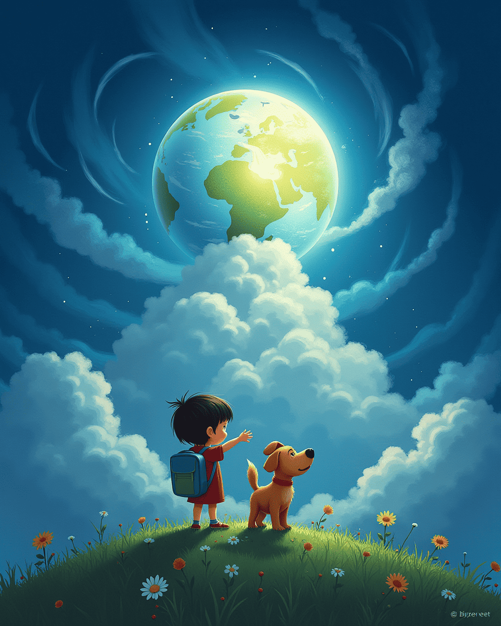 Reaching the very top, they met the shimmering clouds that hovered like a cotton quilt. The globe shuddered and its colors turned the sky itself into a canvas. Lucy lifted her hand to the world and it hummed, forming a song that sounded like wind and rain. Milo barked happily, as if the world was a dance. They felt the world brightened, their sense of wonder blooming.