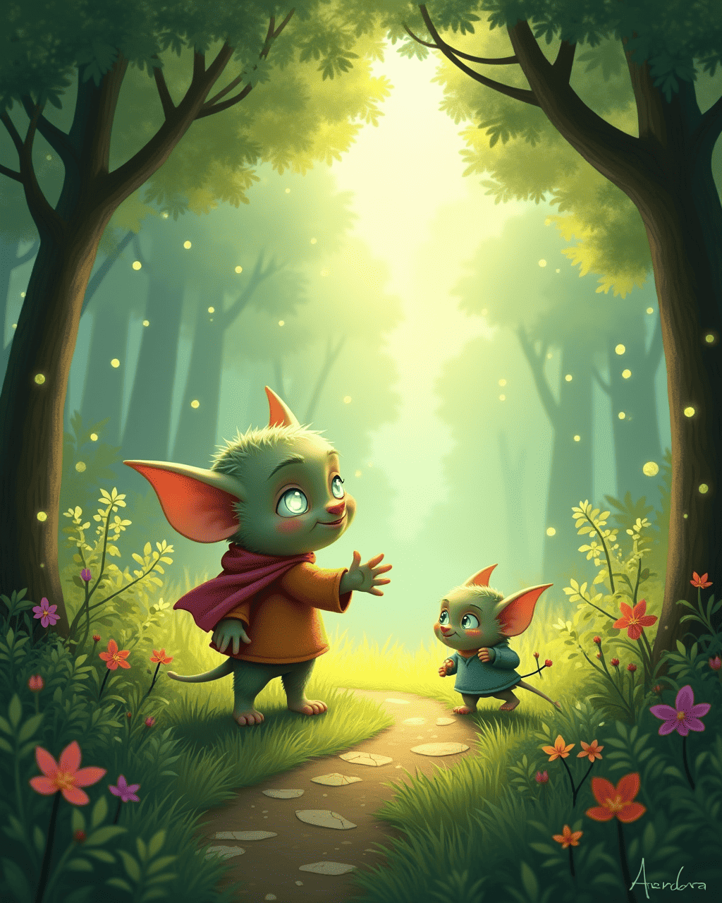 A bright and mysterious adventure that follows a curious child named Maya, who discovers a small glimmering goblin in the forest. Together they explore hidden paths, solve riddles, and learn the value of kindness.