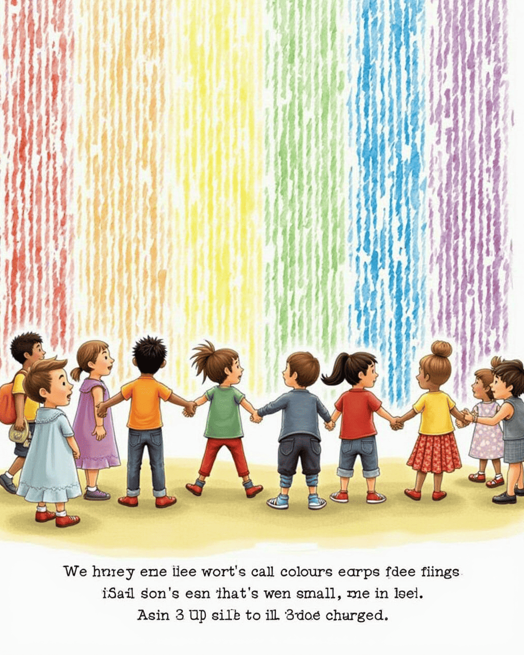 With the whole picture on the wall, Mia mixed all the colors on a small canvas. Each hue was a thread of happiness, sadness, hope, and love. Villagers stood together, holding hands, and felt a shared heartbeat, a rainbow in their souls. Mia realized that emotions were threads that connected everyone.
