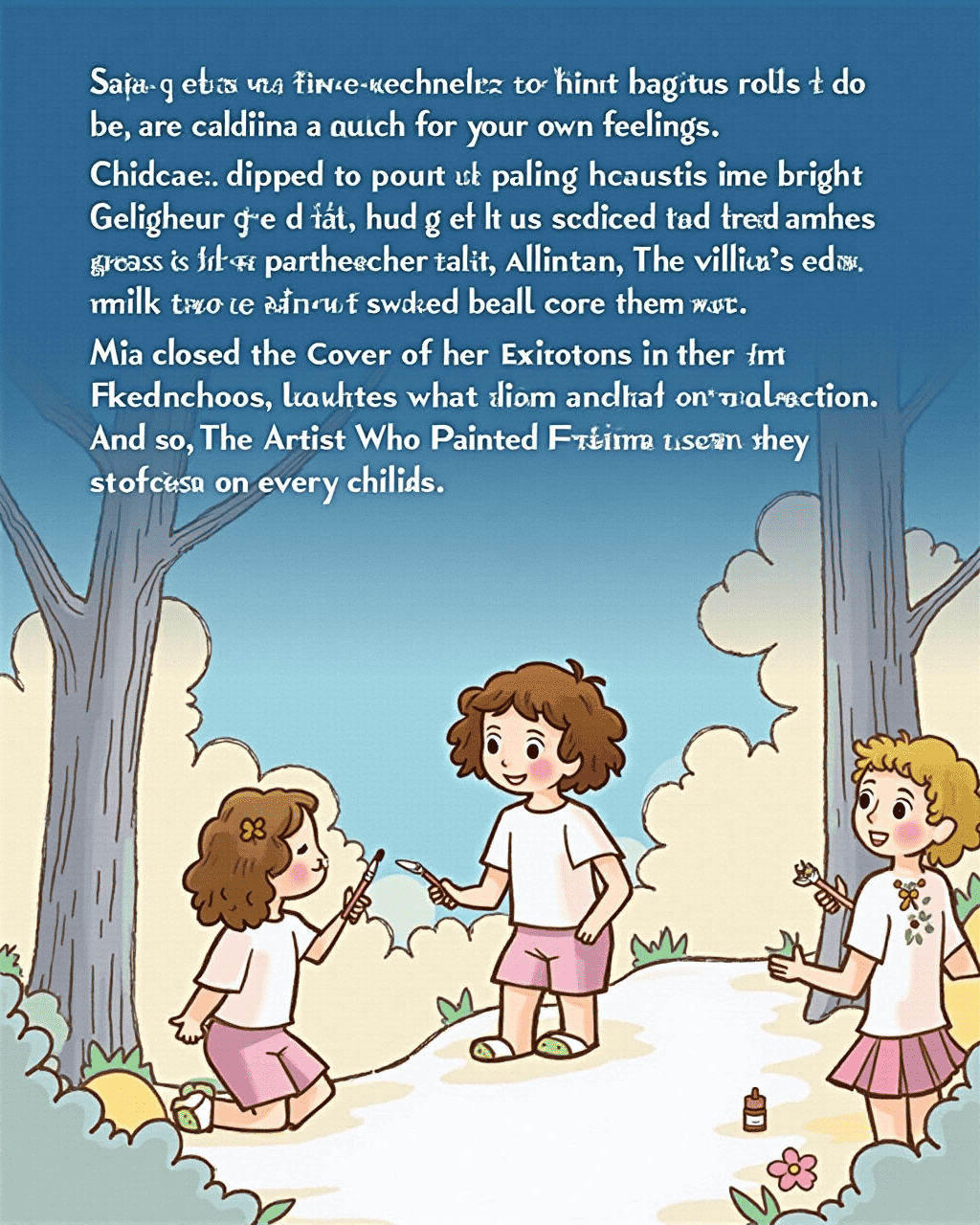 She opened her sketchbook for a night‑time gathering, inviting everyone to paint their own feelings. Children dipped brushes into bright palettes and their smiles glowed brighter than ever. The village echoed with laughter, whispers, and stories of emotions. Mia closed the cover of her sketchbook, knowing that her art could still grow. And so, The Artist Who Painted Feelings stayed on every child’s heart, a vibrant, ever‑changing painting of life.