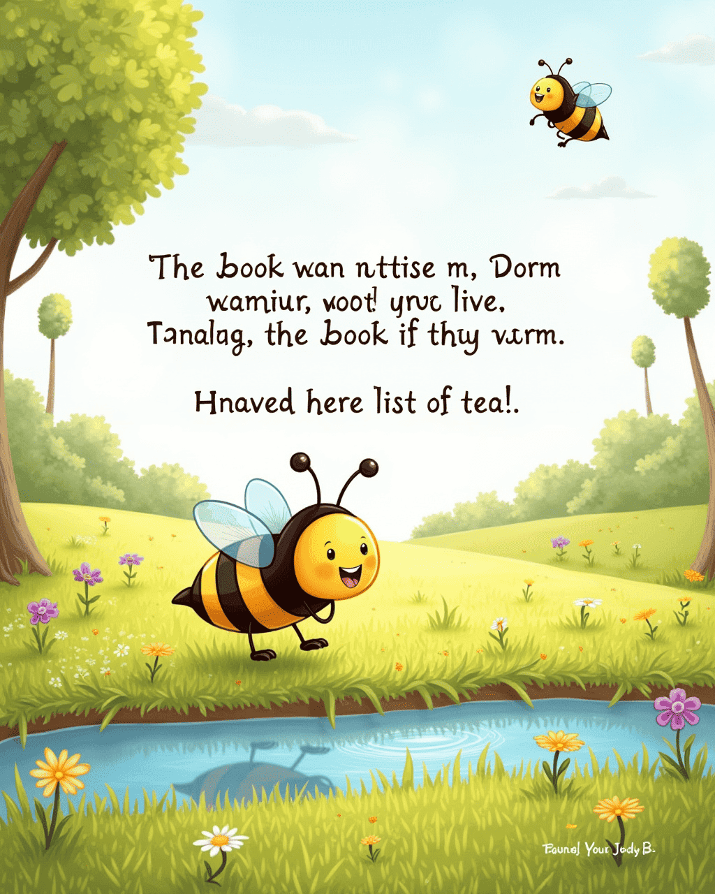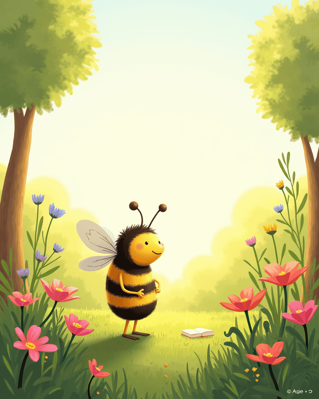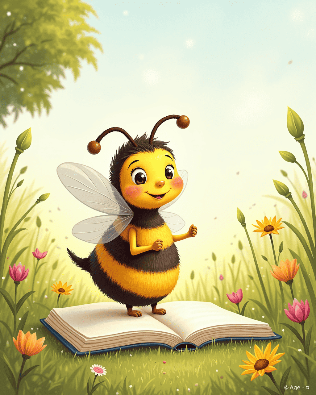 Once upon a time, in a bright meadow, there lived a curious bee named Bella who loved stories more than sweet nectar. She buzzed from flower to flower, dreaming of writing tales for all the other bees and animals to read. Bella believed that every bee's voice should be heard and that stories could connect friends across the meadow. But the other bees thought writing was far slower than flying or gathering pollen. Still, Bella was determined to write a book at least once in her life.