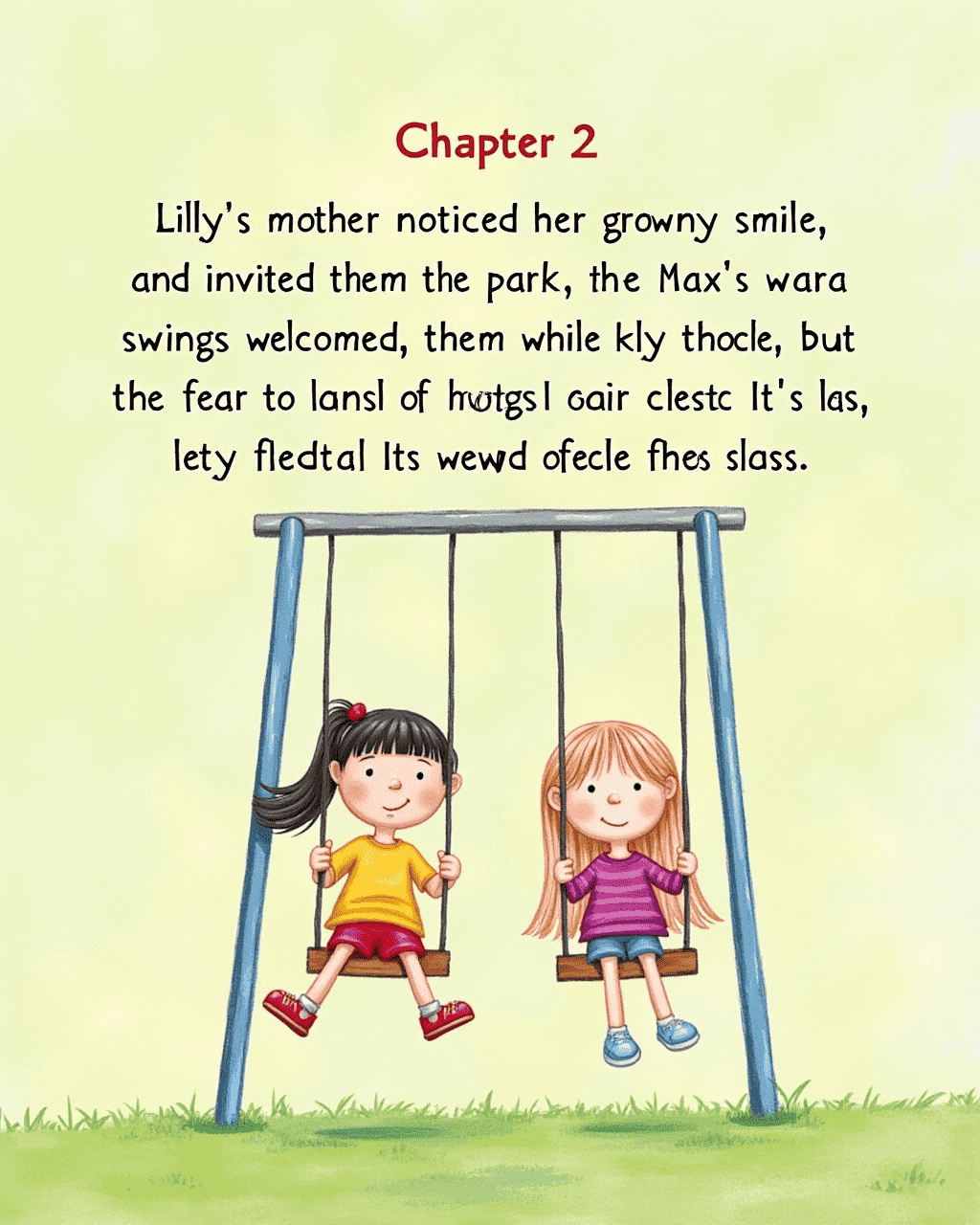 Lilly's mother noticed her gloomy smile. She invited them to the park. Max was hesitant, but the park's swings welcomed them. While swinging, Max shared his fear of losing their friendship. Lilly nodded, feeling the weight of her silence. The air seemed to breathe a fresh start.