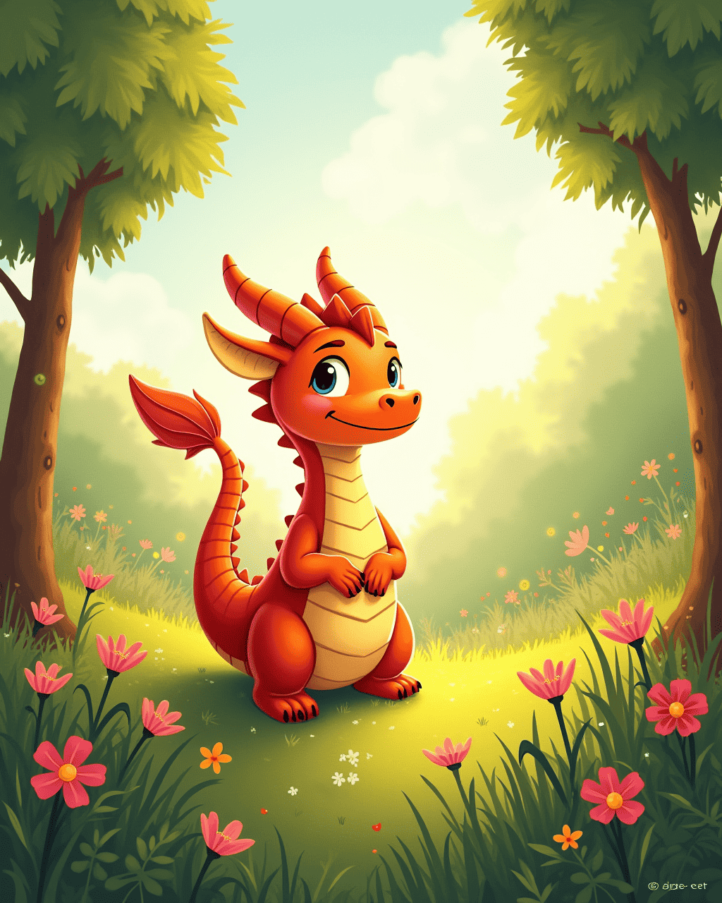 Lucy flipped to the next page and gasped at the illustration of a bright, friendly dragon named Ember. Ember waved his tail and said, "Hello, Lucy! I can help you explore any world you dream of." Lucy imagined flying over forests and oceans, but as she turned each page, the story shifted like a wind. Ember laughed and showed how magical this book truly was. The picture on the page sparkled brighter with each new turn.