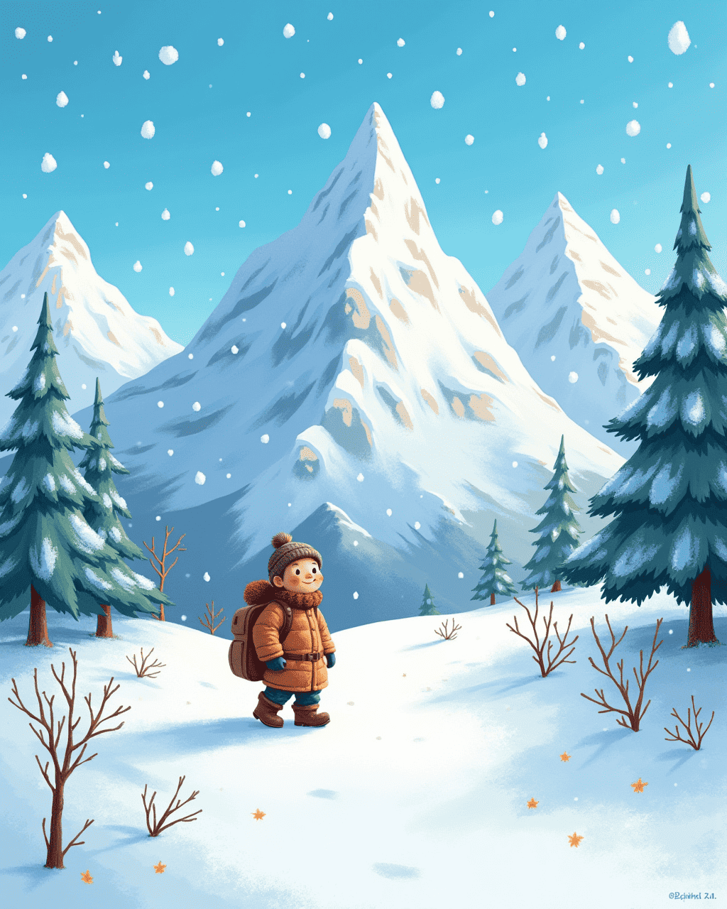 Milo had always loved the mountains. One winter morning he heard whispers of a place hidden beneath the snowfall. The wind carried old tales about giants that guarded the snow. He packed his tiny backpack and set off. His heart thumped with excitement and a hint of fear.