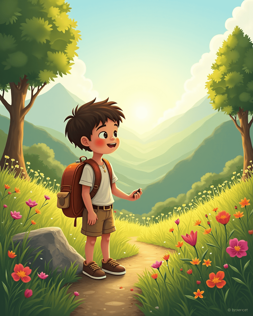 At sunrise, the valley sparkled with dew on the wildflowers. Milo felt the cool breeze whispering ancient songs. He pressed a small rock under his boot for luck. The valley seemed alive, humming with secrets. Milo promised himself to explore every corner.