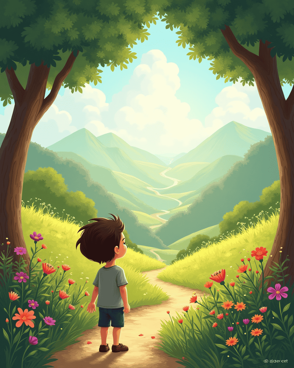 Guided by the map, Milo followed the valley’s winding trails. He reached the center where a silver tree stood tall. Milo placed his hand on its bark and made a promise to protect the valley. The tree’s leaves rustled, singing thanks. Milo returned home, knowing the valley’s secrets will last forever.
