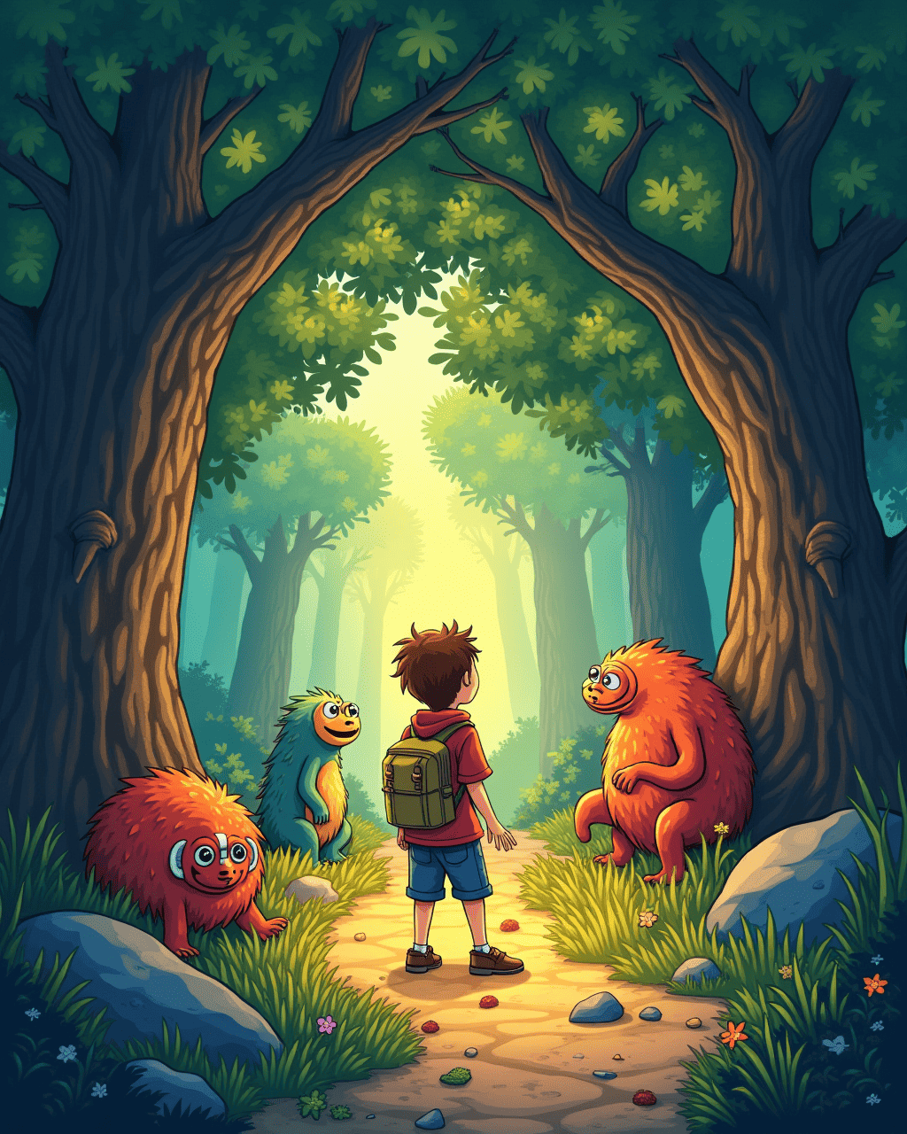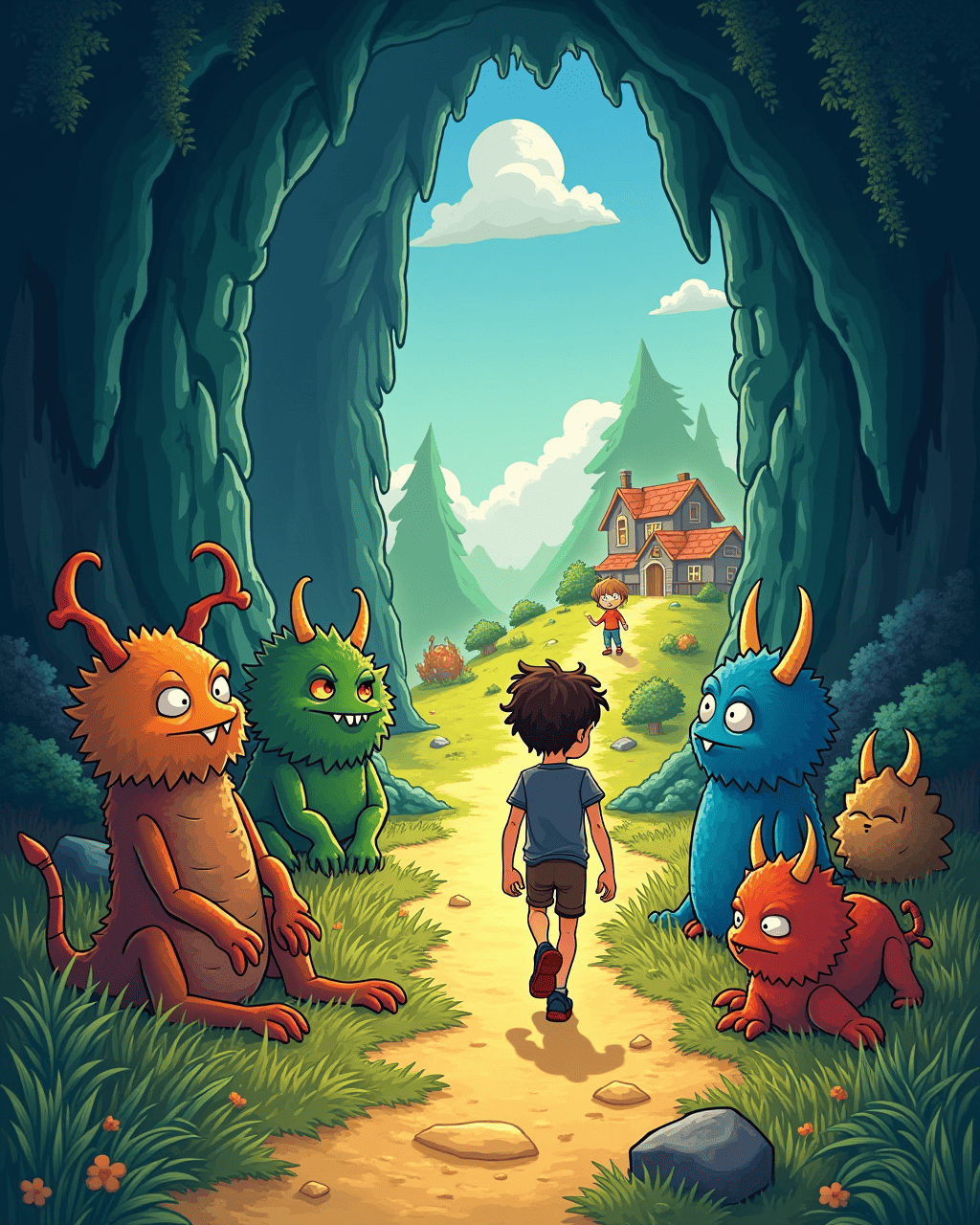 After the festival, Leo knew it was time to return. Glimmer and the monsters followed him out through the hidden path. As he stepped out into the sunlight, the shining stone in his pocket glowed softer, a reminder of adventures. Leo waved goodbye to Glimmer and promised to visit again. Then he walked home, feeling proud and grateful for the journey.