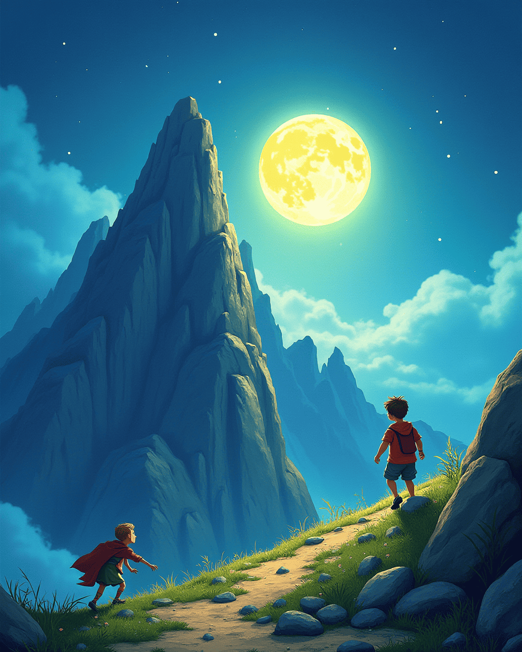The next obstacle was a towering mountain made of echoing rocks. Each step Leo took echoed a song of the forest. Glimmer hopped ahead, guiding him with tiny luminous footprints. Leo climbed slowly, feeling each echo reverberate in his chest. At the summit, they found a glowing statue that thanked them for kindness to all monsters.