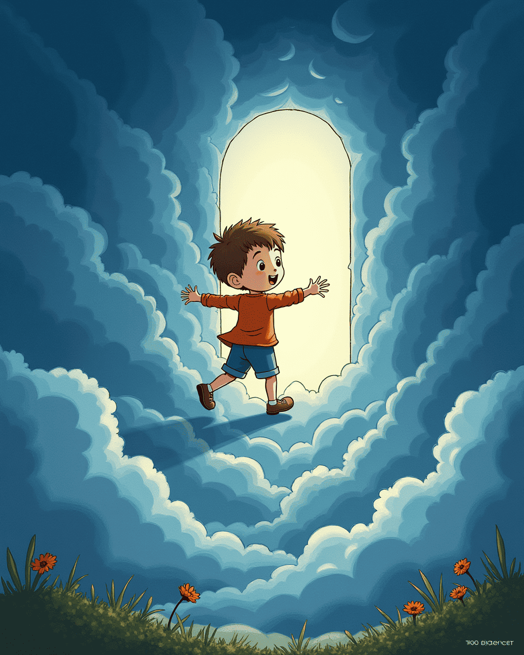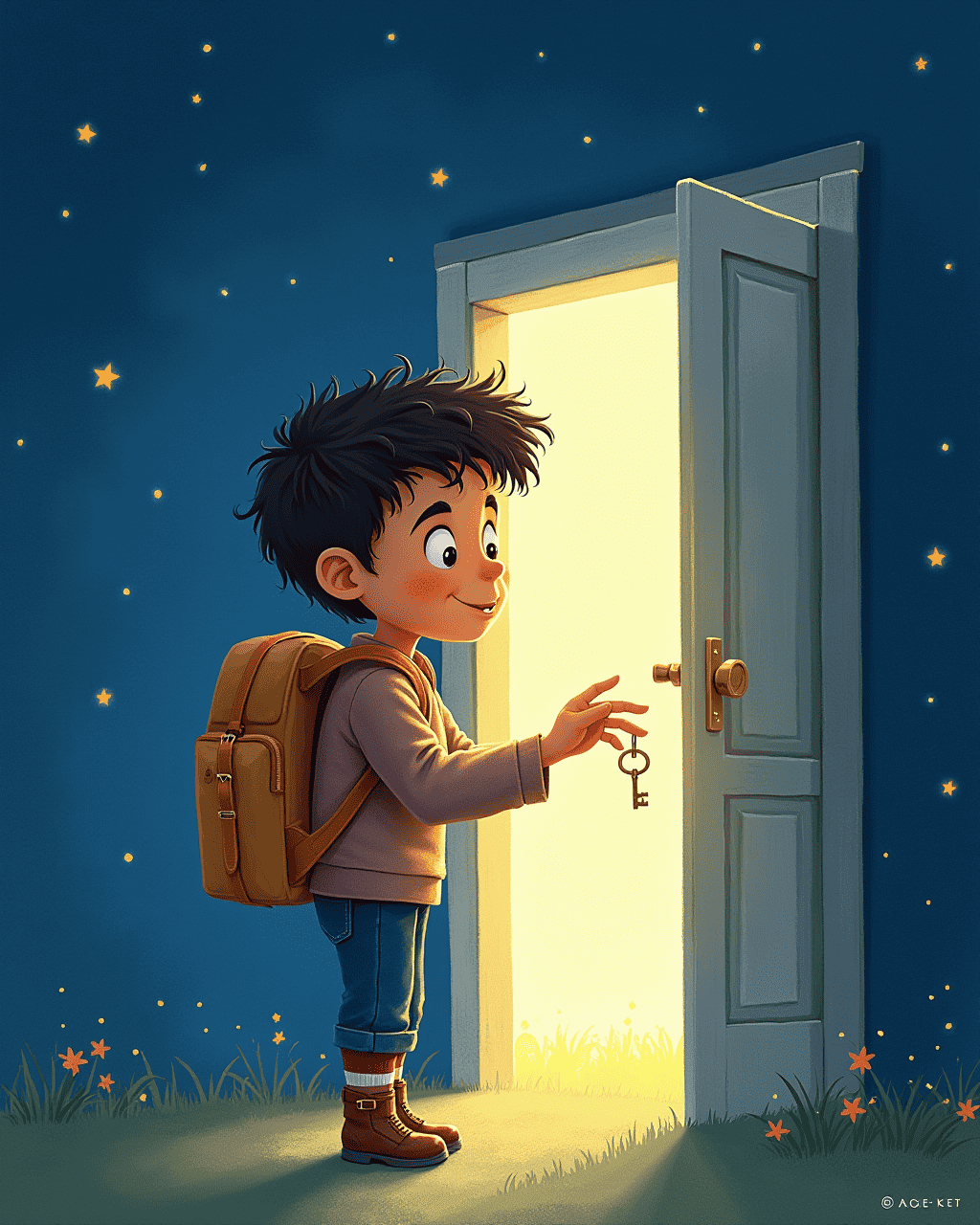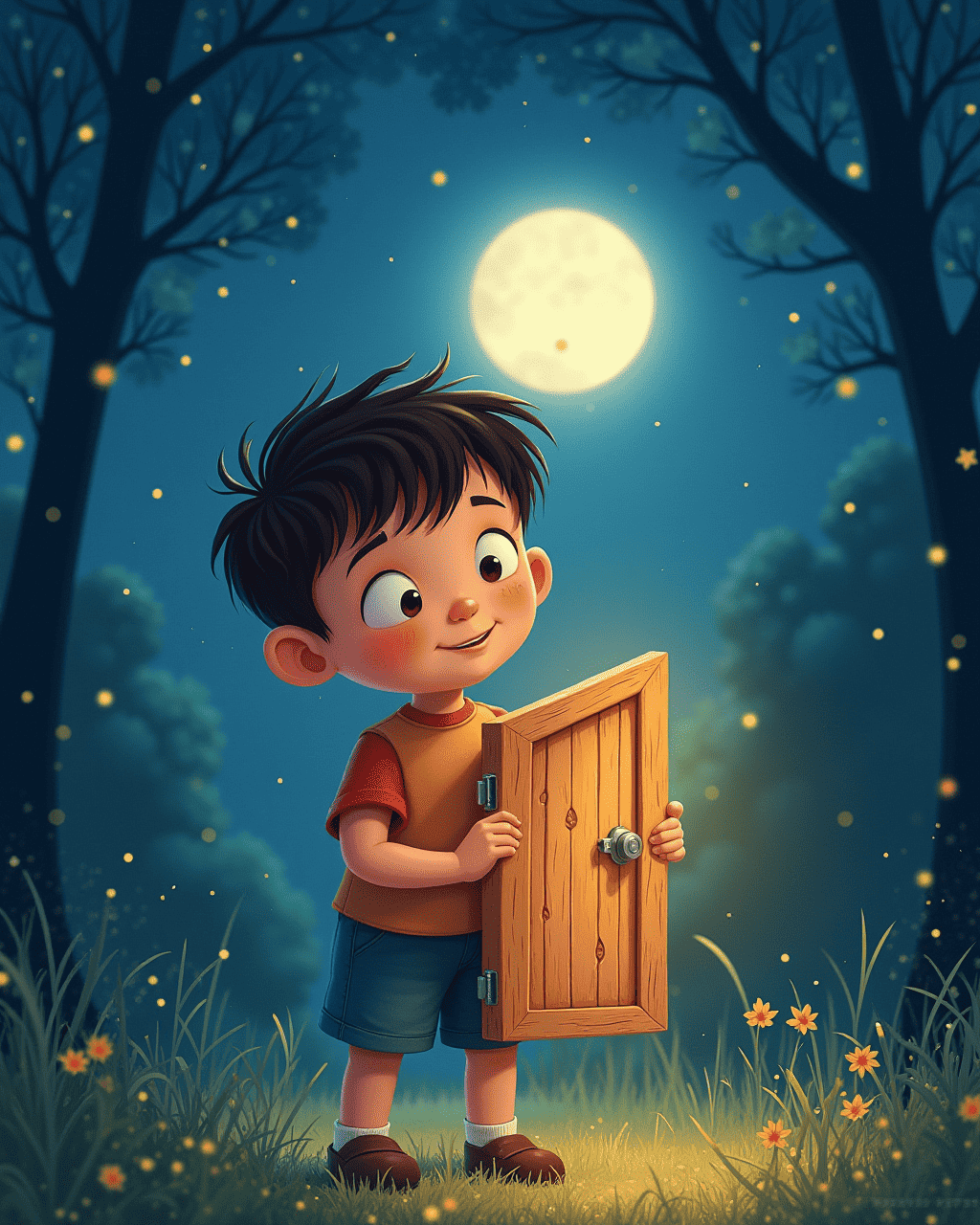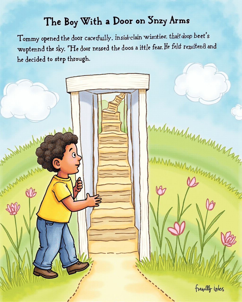 On a sunny afternoon, Tommy found a small wooden door on his arm.