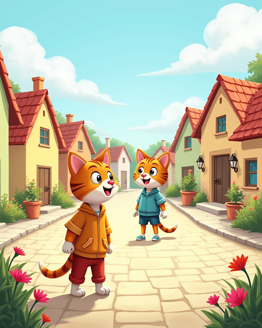 Whiskers lived in a cozy town where everybody knew each other. The town’s square was always full of friendly faces and bright flowers. Whiskers loved to curl on the warm patches of stone and listen to the chatter of the townsfolk. One sunny morning, Whiskers heard the mayor’s announcement about a new job opening. The villagers were excited, and Whiskers felt a spark of wonder grow inside.