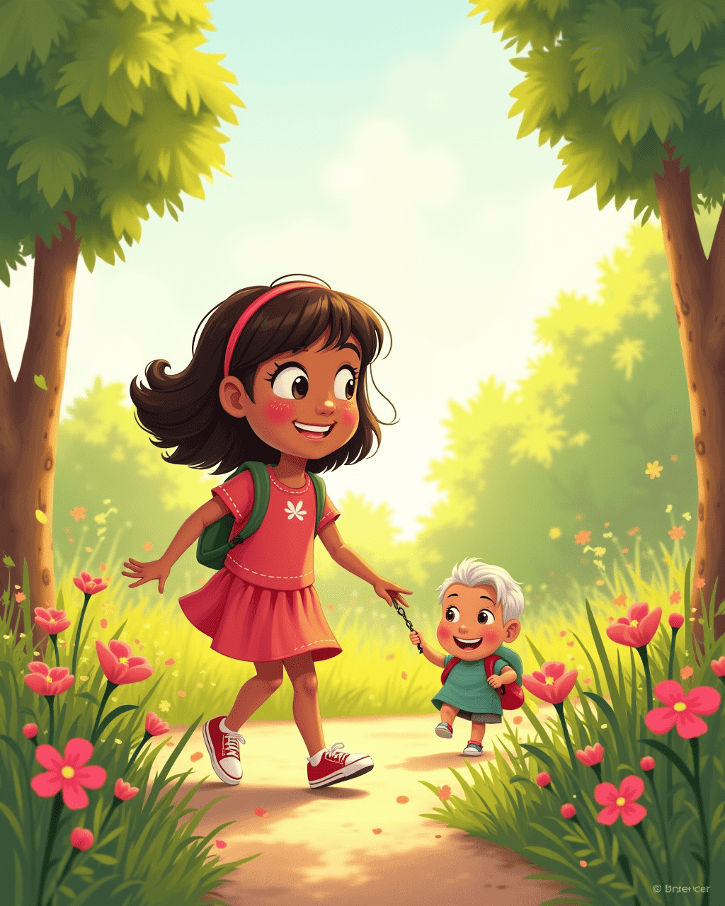 Little Maya was walking home from school when she saw the old lady struggling to carry her groceries. She immediately offered her help, and the lady's face lit up with a warm smile. Maya felt a tingling excitement in her chest as she realized she could bring joy to others. She promised herself that she would do more kindnesses every day. With a bright grin, she skipped down the street.