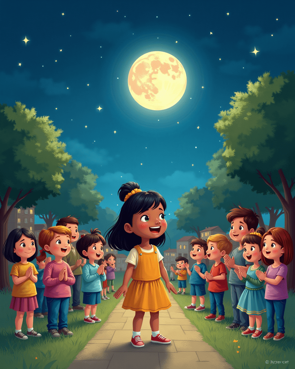 Everyone in town held a small parade to celebrate Maya's kindness chain. Children sang, and adults clapped. At the end, Maya received a shiny medal of gratitude from the mayor. She thanked everyone, promising to keep spreading kindness. The children cheered, and the park glowed with happiness, all because one child started a kindness chain.