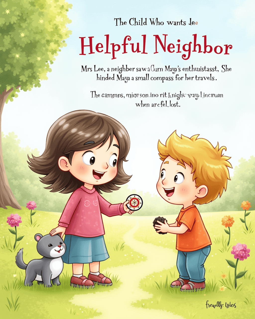 Once upon a bright morning, a curious child named Maya dreamed of adventures. She loved listening to stories from her grandparents and wanted to explore places beyond her backyard. Maya thought, "One day I will travel on my own." She practiced tying shoelaces, opening doors, and making her own breakfast. Each small triumph filled her heart with confidence.