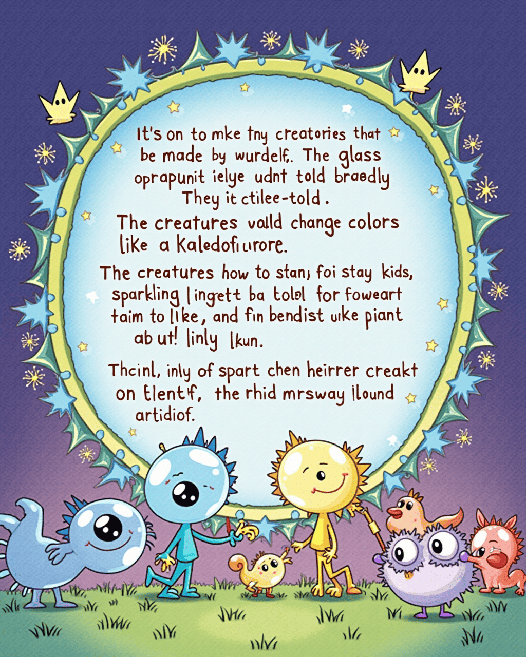 They met tiny creatures that were made of glass. The creatures could change colors like a kaleidoscope. They told the children how to stay safe. The creatures gave them sparkling badges for bravery. The kids promised to help if needed.