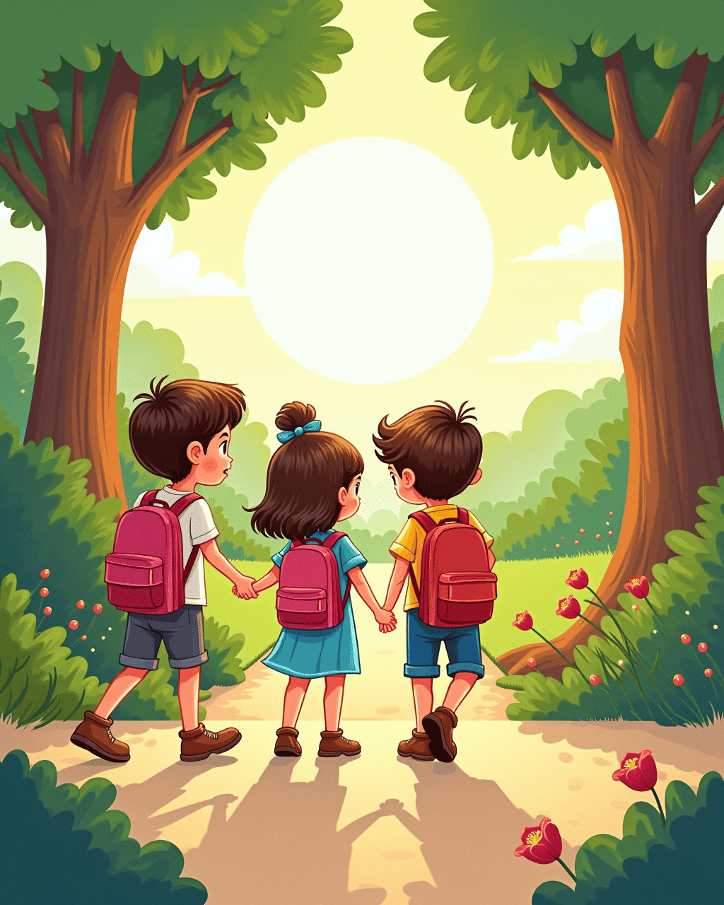 The children stepped back through the mirror. Their garden looked familiar again. The sun was warm and the oak tree smiled. Their backpacks were full of sweet treats and memories. They planned to return one day to the mirror world.
