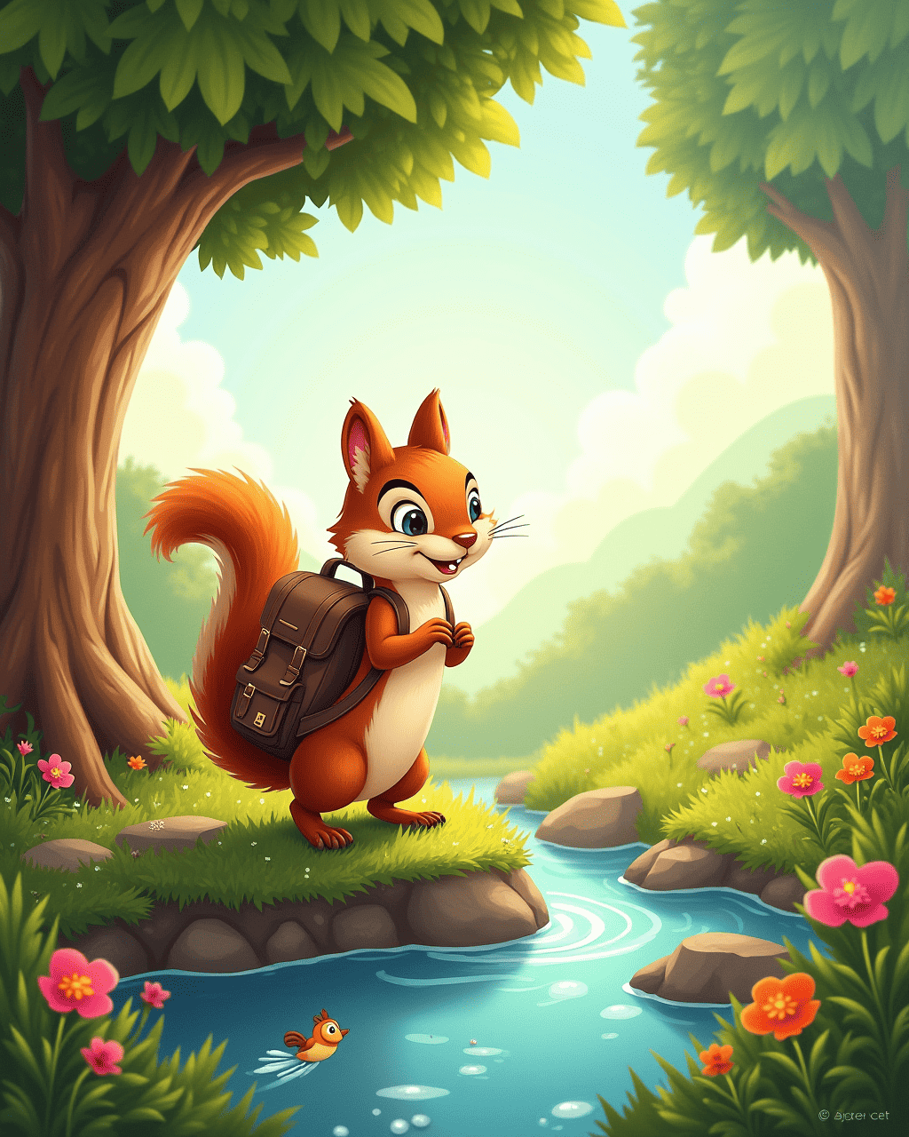 Milo lives in a cozy burrow beneath a towering oak tree. Though his world is full of squirrels, birds, and bees, Milo feels a tug in his heart to see what lies beyond the hills. One bright morning, he gathers his tiny backpack, fills it with acorns, berries, and a map drawn on a leaf, and sets off toward the mysterious east. The wind whispers stories of faraway places, and Milo feels ready to follow them. He hops over a sparkling stream, watches a rainbow ripple across the water, and smiles at the promise of adventure.