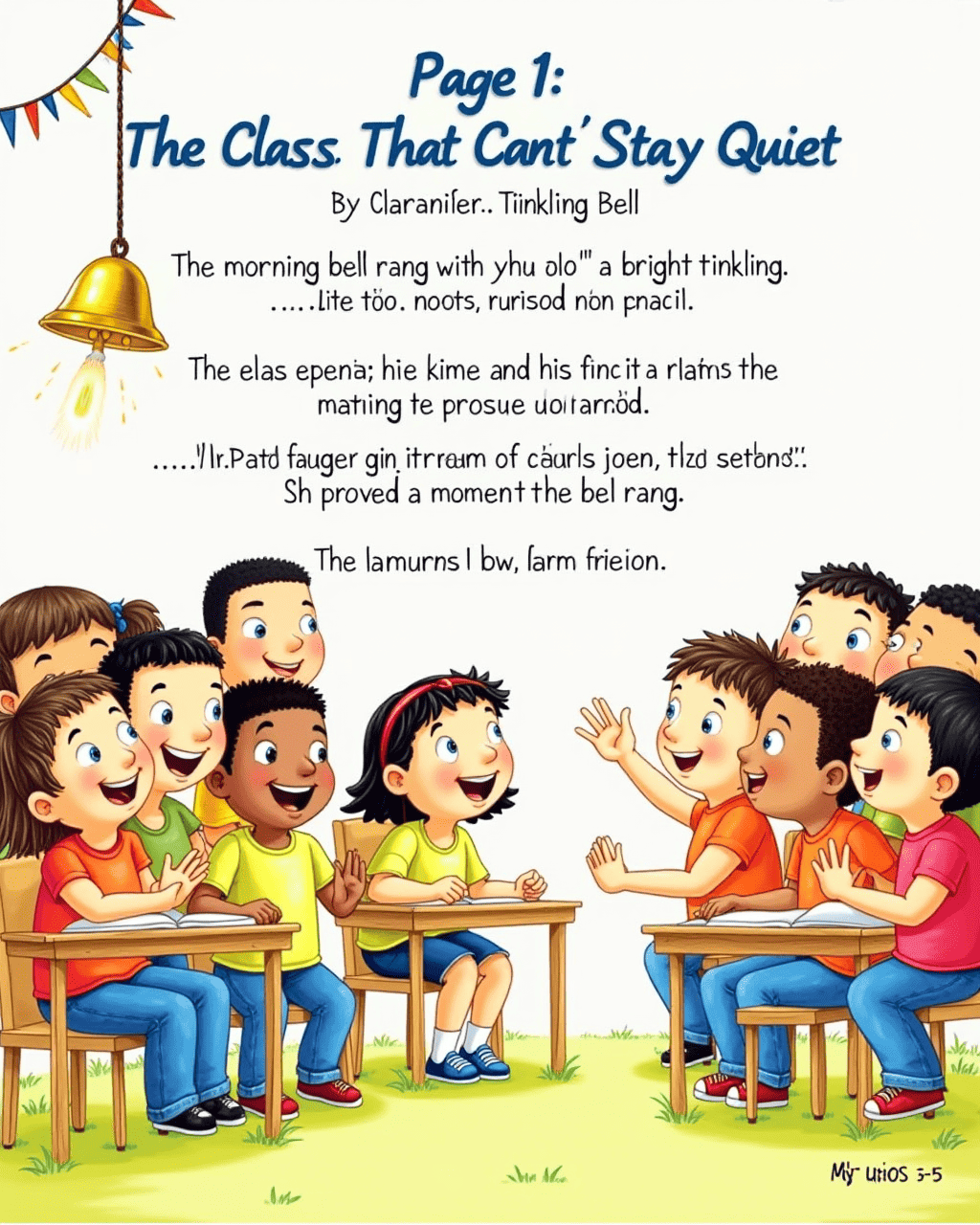 The morning bell rang with a bright tinkling. The class erupted into chatter. Little Tom tossed his pencil, causing a ripple in the silence. Mrs. Patel smiled, knowing she had a challenge ahead. She whispered, "Quiet the moment the bell rings."