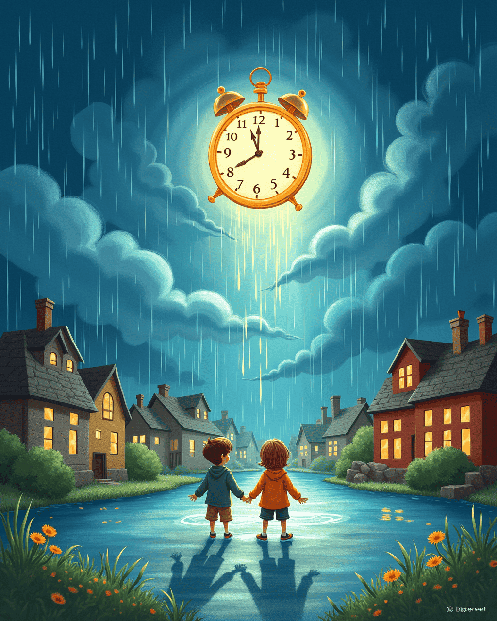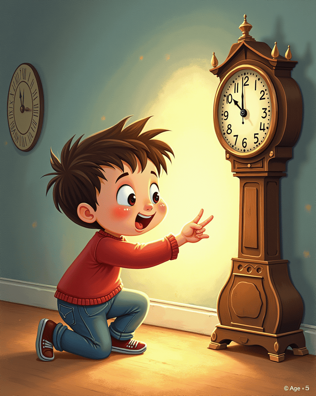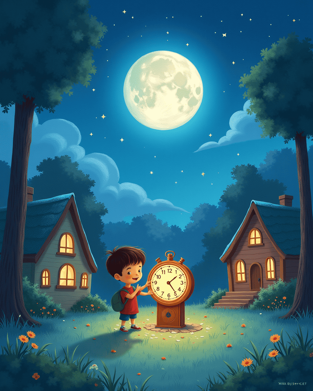 When everything returned, everyone praised Tommy’s bravery. The clock’s glow faded to a gentle blue. Tommy placed it back in the attic, knowing it belonged to the town. He learned that time, when used right, is a gift. The villagers celebrated with a feast that night, and the clock chimed happily.