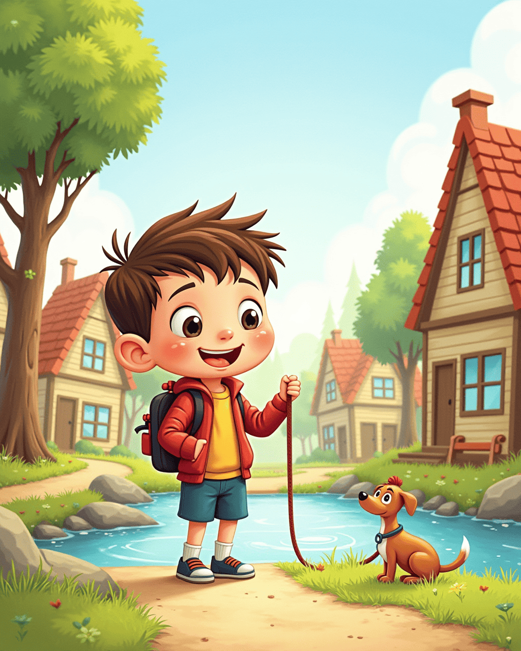 With the pause button he walked through the town while everyone was still. The baker was baking bread, the river lay still, and the dog rested on its leash. Tommy helped a lost puppy find its home. The pause made him realize how much kindness he could do. He kept the button hidden in his pocket.