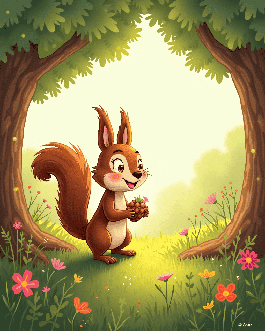 Sammy the squirrel loved to gather acorns from the forest floor.