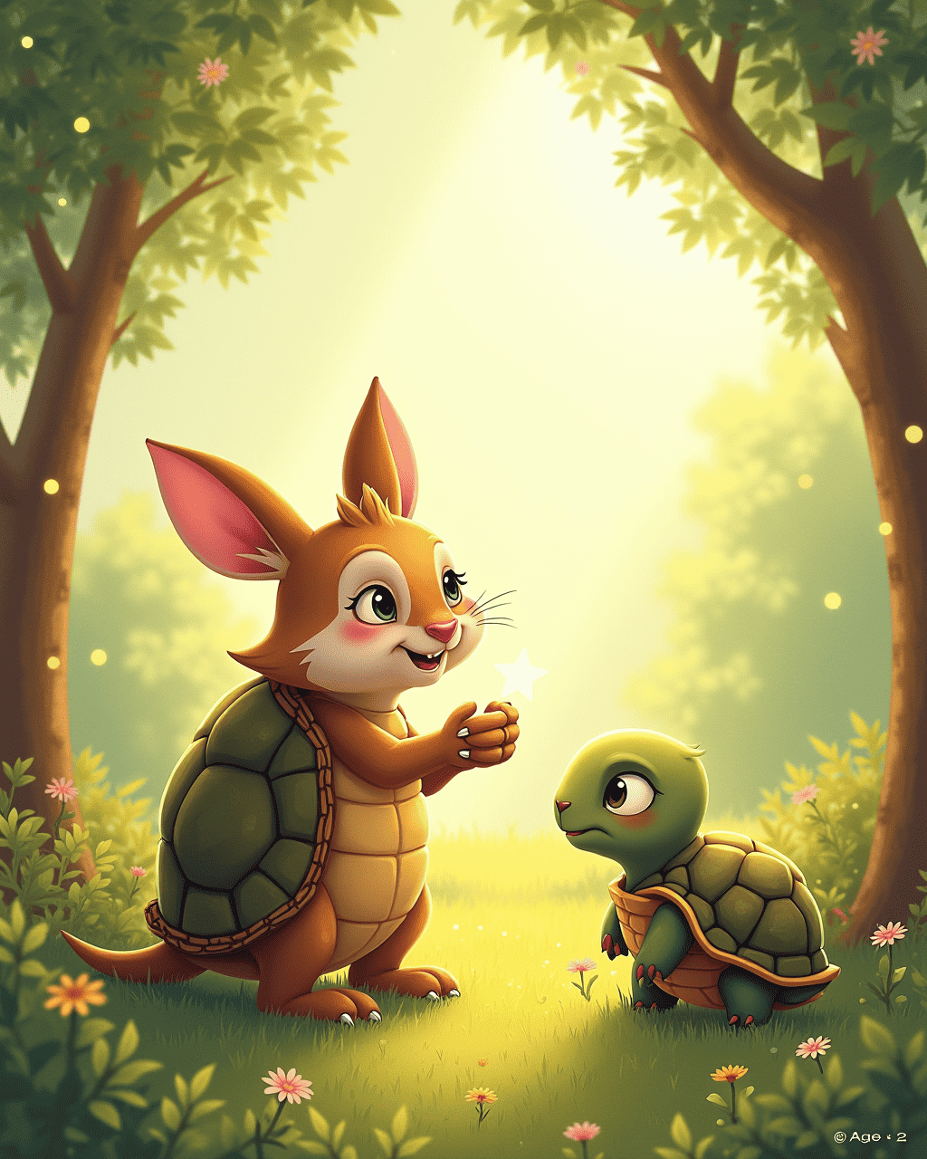 The next morning, as golden sunlight danced on leaves, Sammy met Maya, the wise tortoise.
