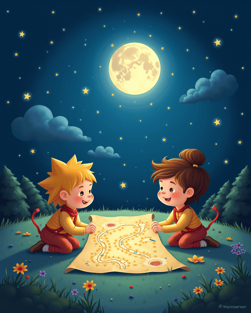 An old parchment unfolded. Stella the Star found a map. It showed hidden constellations. They traced the paths with a silver pen. Excitement pulsed in their hearts.