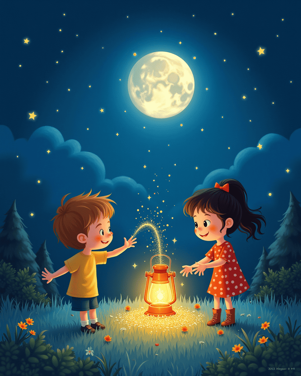 A glittering treasure emerged. The crew collected sparkling dust. They used it to light a lantern. The lantern guided them home. The night felt calm and bright.