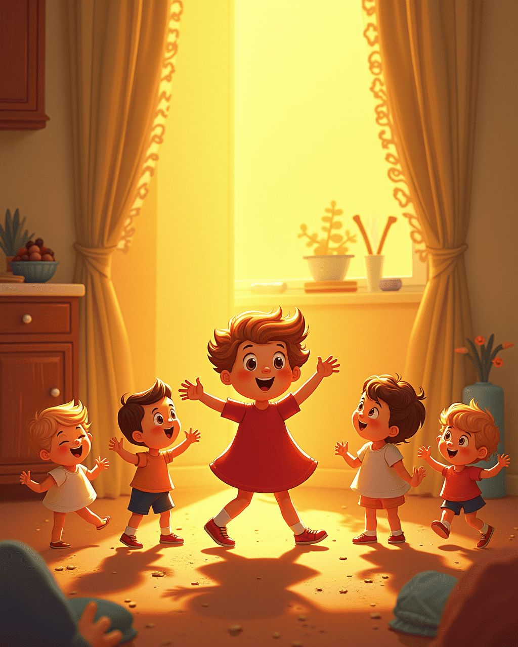 During the morning glow, the golden pancakes started to dance. They flapped their fluffy limbs over the syrupy stage, making everyone smile. The orange juice twirled in a sparkling ballet, inviting the toast to join. Little crumbs giggled at the rhythm, turning the kitchen floor into a joyful dance floor. By the time the children arrived, the whole breakfast had become a lively concert.